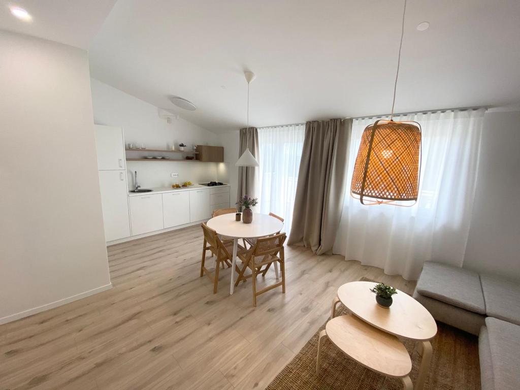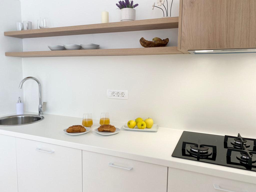 The newly renovated apartments, although located just a few minutes' walk from the beach and the town center, the pine forest in front of the large terraces provide peace, the smell of the sea and the sound of crickets. Natural and airy materials, present throughout the interior, contribute to a soothing ambience. The simplicity of the space, wood and knitting make the space pleasant. At the same time, the apartments are modernly equipped, enabling the guest to completely relax and have a real sense of rest.