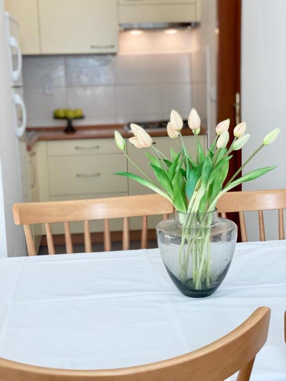 Staying in the Flora apartment made our summer vacation unforgettable. Everything is new, neat, comfortable and stylishly furnished. Enchanting view from the terrace and from the living room. The proximity of the apartment allows for an afternoon rest in a pleasantly cooled apartment, as it is a few minutes' walk from the beach. The hosts are very pleasant, warm and hospitable Thank you Lana and Patrik