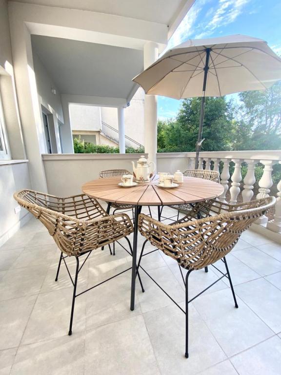 Beautiful, modern and clean apartment, equipped with all the necessary things. Beautiful view of the sea..close to the beach and the center. The owners of the apartment are warm and kind, all recommendations for a perfect vacation!!