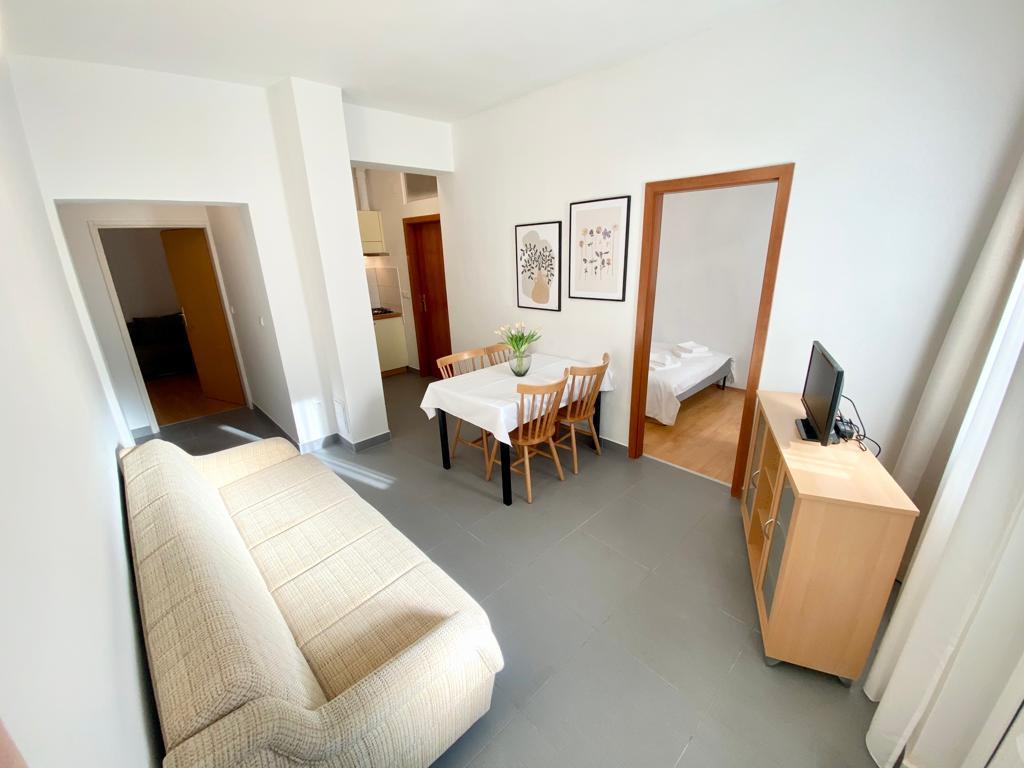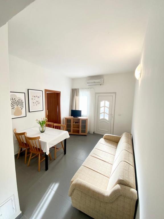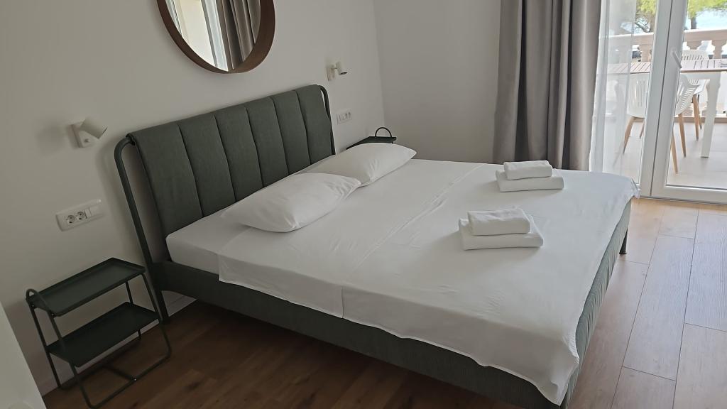 Stayed in AP2+1 on the ground floor. The choice of this accommodation is largely due to Ms. Lana, who was so kind and cordial during my inquiry over the phone that we didn't look any further. The apartment is exactly as shown in the pictures, without any hidden defects, neat and clean, and well equipped for a pleasant stay. The bed is comfortable, and there is a mattress pad on the couch, which is enough for an adult to sleep. The host Patrick is casual and always available, he makes sure you feel welcome. The location could not be better, the beach 1 minute or 5 minutes depending on where you want to swim, the center 5 minutes. These hosts and their apartments can serve as an example of how to do business in private tourism, if you already pay something, you really get something for that money. Great recommendation to everyone.