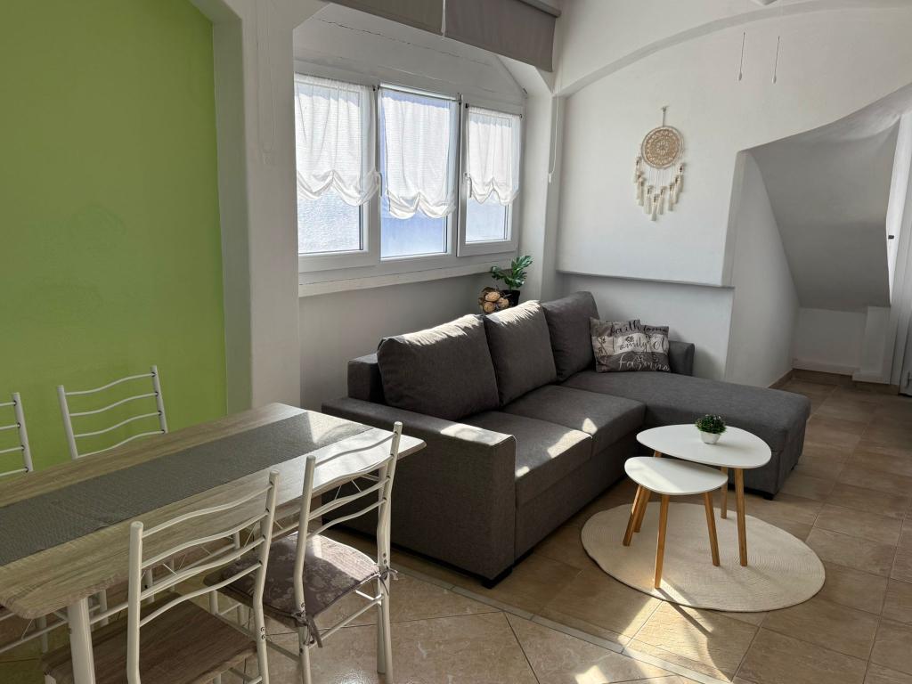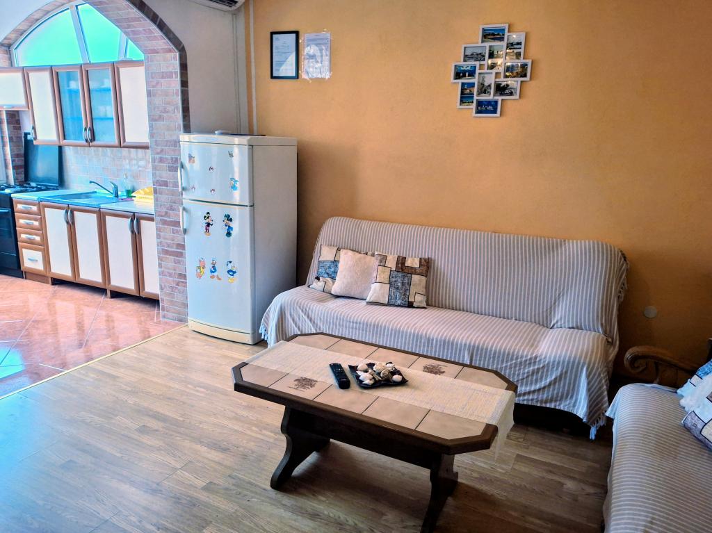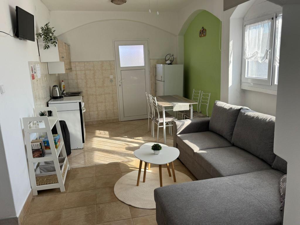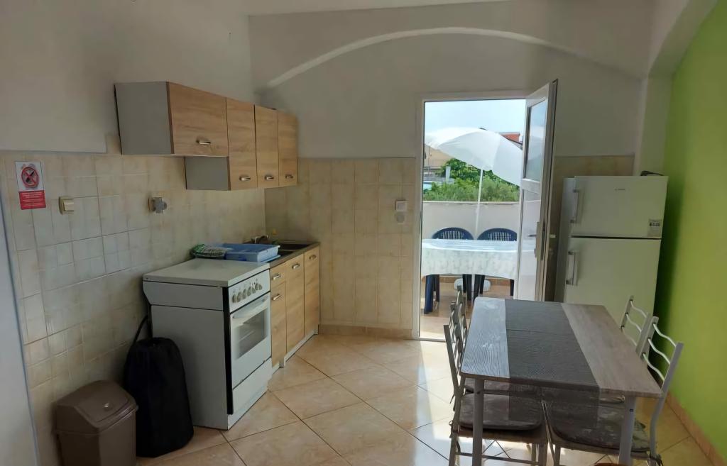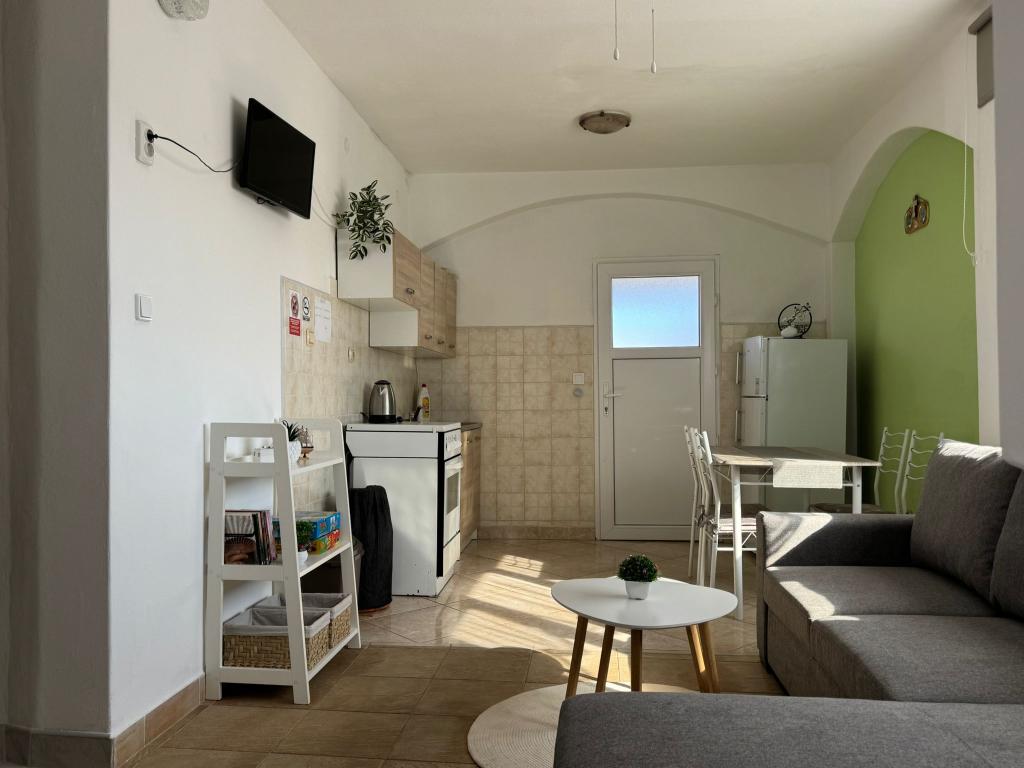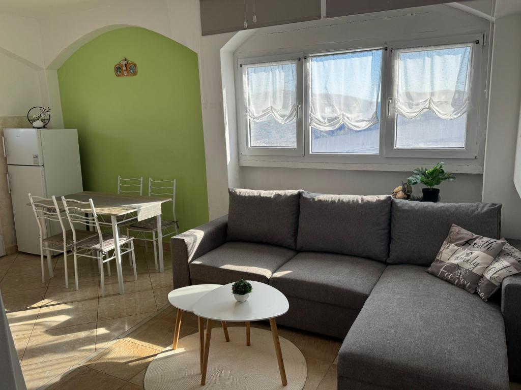 The apartments are located on the ground floor and first floor of a family house, located in a quiet and pleasant neighborhood, ideal for a relaxing vacation. These are two-bedroom, modernly decorated and fully equipped apartments that provide everything you need for a pleasant stay. Guests have access to free Wi-Fi, air conditioning, Smart TV, secured parking and the possibility of using a barbecue. The beach and the town center are only 300–400 meters away, so a car is not needed. In the immediate vicinity there are three larger supermarkets, a post office, a clinic, a pharmacy and a market, as well as numerous restaurants, bakeries and cafes. During the summer months, various events and entertainment and cultural activities are organized in the town every day. There is also a children's playground near the apartments, which makes the accommodation particularly suitable for families with children.