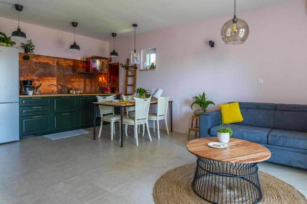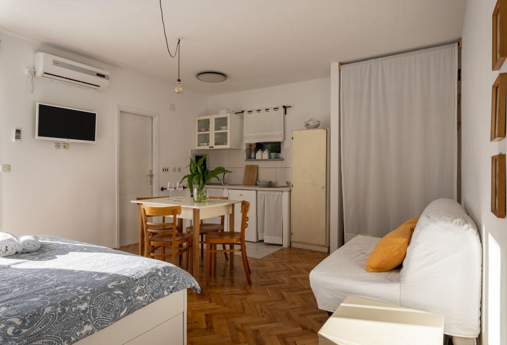 Our house with 5 accommodation units available is located in Pirovac, near the town of Sibenik. Accommodation units are distributed on 2 floors of the house, on the ground floor of which we are as your hosts. Our accommodation units exude a blend of tradition and modernity, with the main guiding thread being to breathe new life into everything old and dilapidated and modernize it. Each accommodation unit tells its own story, it is up to you to decide which story you belong to. Each of them has an equipped kitchen, bedroom, at least one bathroom, space with TV and terrace. All units are air conditioned and have all the necessary devices to make your vacation carefree and pleasant, and if you miss anything, the hosts are at your disposal. In front of the house we have provided you with free parking. The house is 200 meters away from the center and to the beach Lolić.