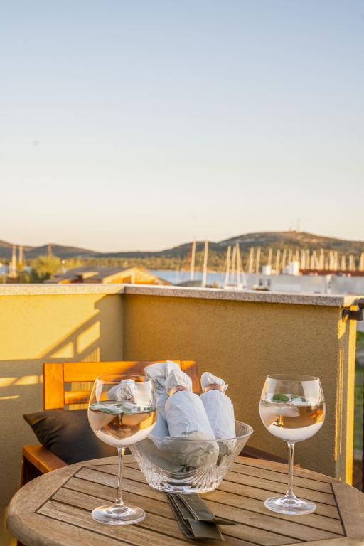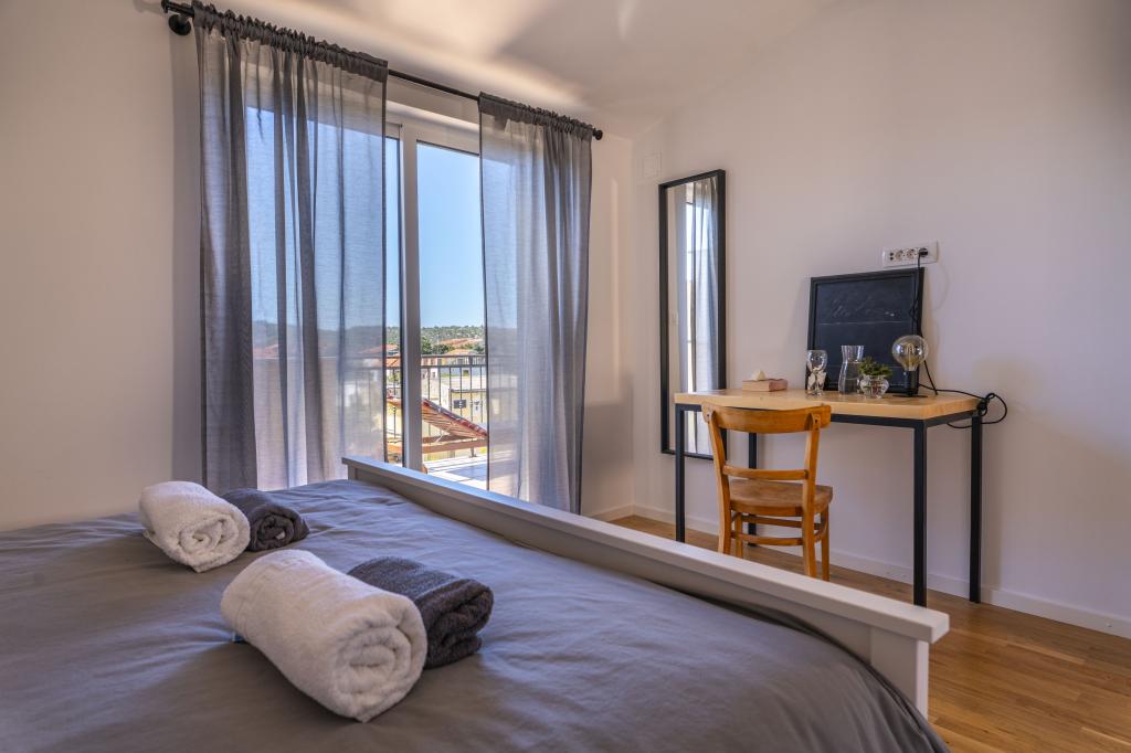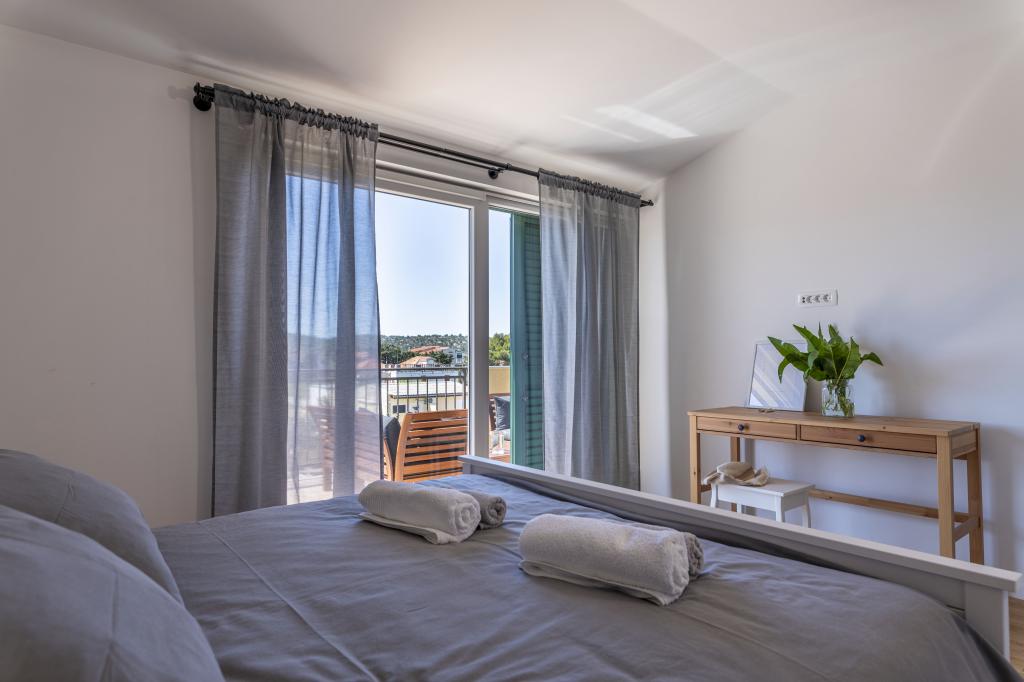 Pirovac is located in the deep bay of the Adriatic Sea and Lake Vrana and for that reason it always has 4 degrees warmer sea than other places. The climate is mild and suitable for staying at any time of the year with a large number of sunny days and extremely mild winters. In Pirovac you can enjoy long walks in nature, cycling, sports and recreational activities, try diving, fishing and get to know nature, but also cultural goods and gastronomy, which, as in the rest of Dalmatia, is extremely rich and special. Near our accommodation there are restaurants, cafes, pastry shops, pizzerias, beaches, shops, market, gas station, post office, marina and bike paths. Only 20 kilometers separates you from the county center, the city of Sibenik, where you can miss a handful of entertainment, cultural, historical and natural beauties, but you can certainly enjoy the gastronomy, concerts and the like.