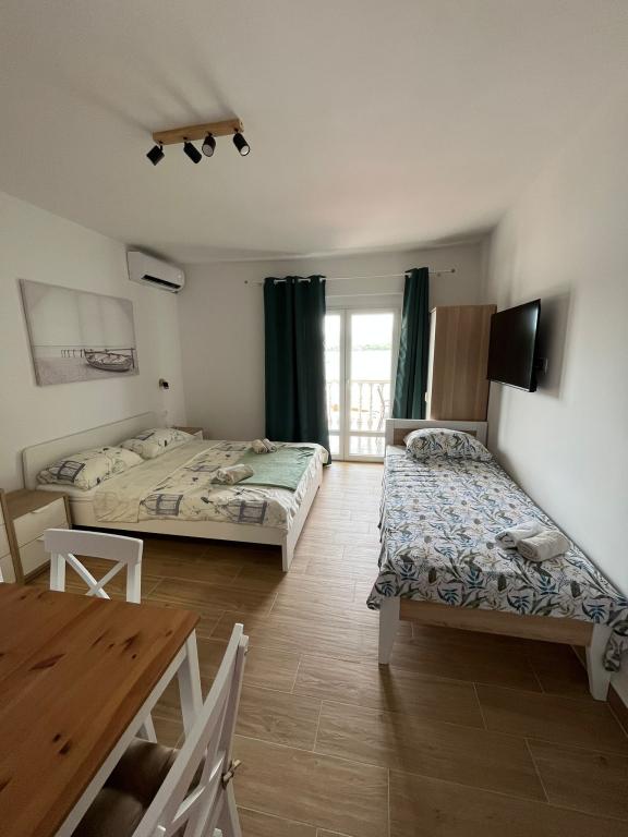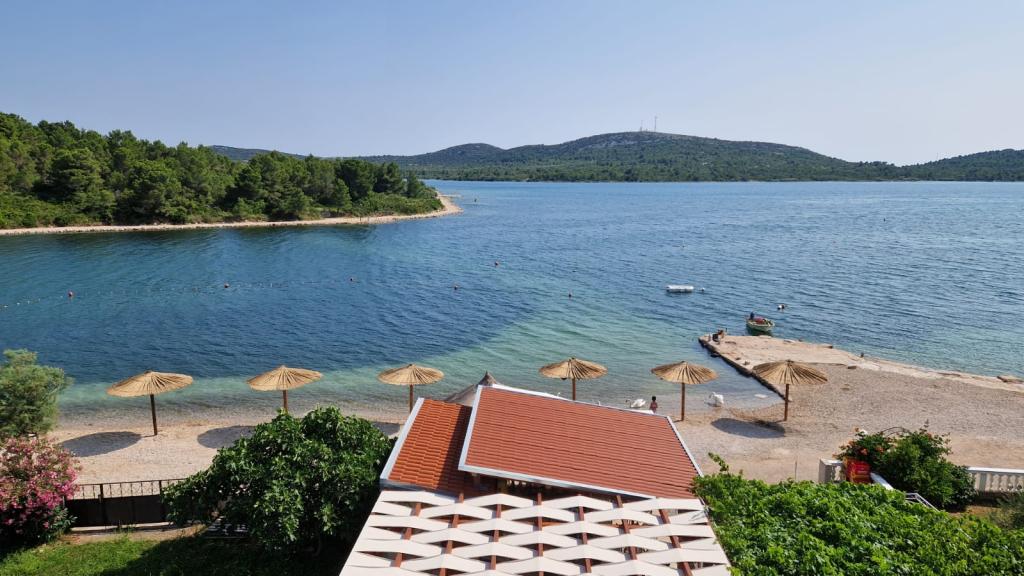 Apartments first row to the sea. All apartments have spacious terraces overlooking the sea. Several apartments of different capacity. On the beach, without car traffic, a beach is ideal for children. Possibility to use outside shower and grill. In front of the house there is a small beach bar.