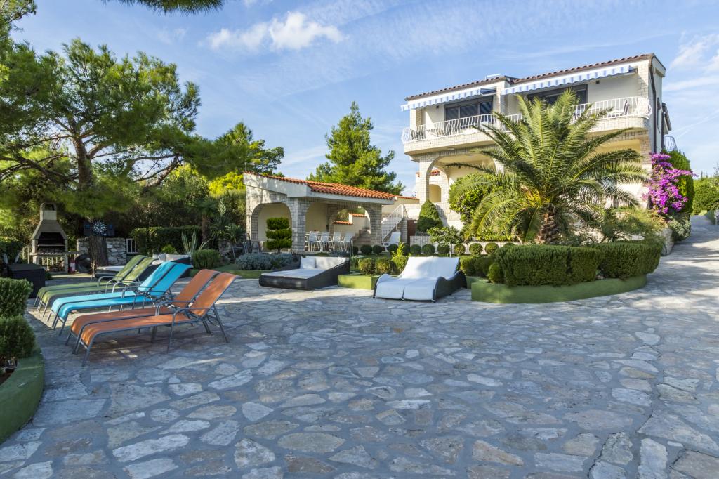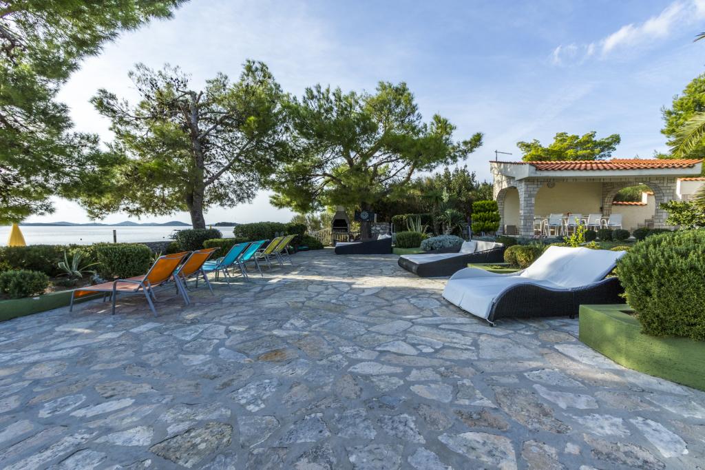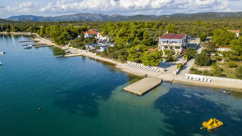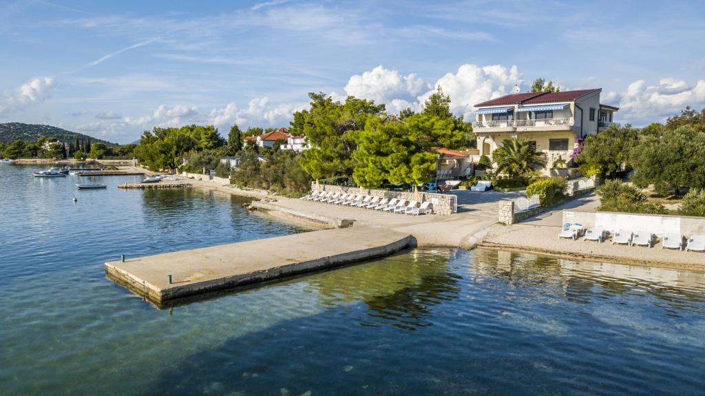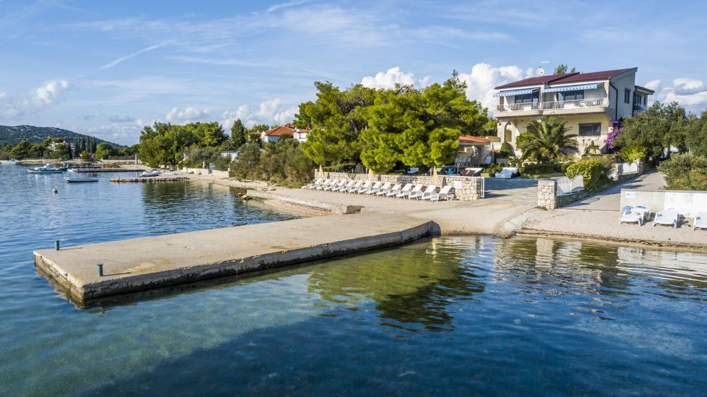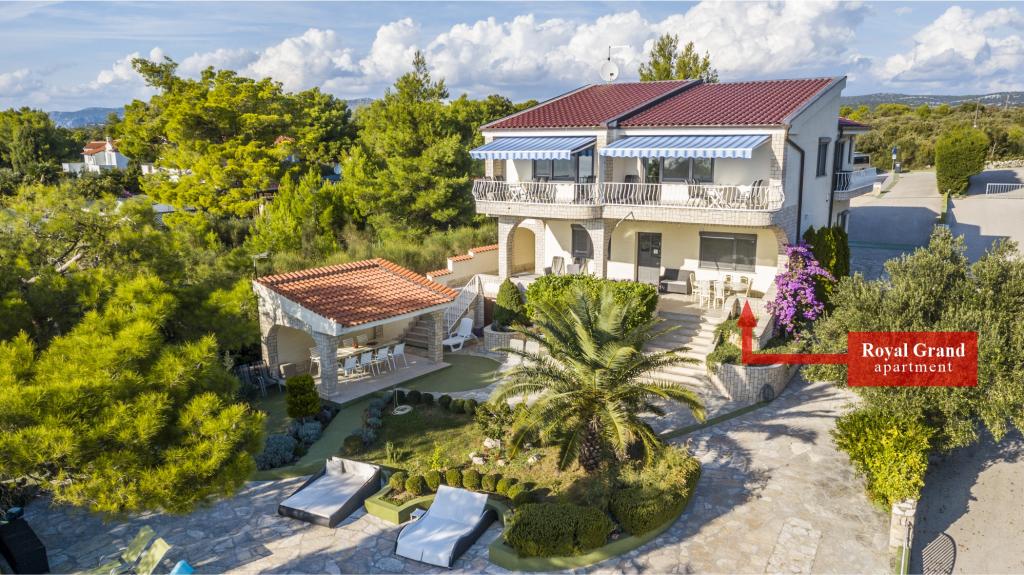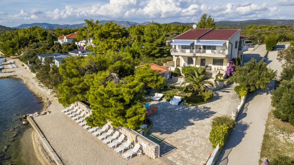 Villa Punta Royal is situated next to the sea in a quiet bay and has its own pebble beach. The sea is shallow and becomes deeper when it goes away from the coast, which is perfect for small children. In front of the Villa is a Mediterranean garden where you can enjoy the charms of Dalmatia and the Adriatic Sea. Everything is in one place, you do not have to worry with storing your belongings to go to the beach because your apartment is only 15 meters from the beach which is in front of Villa. Wireless internet is free and available in the whole Villa and the whole beach. Parking is next to the Villa and is free of charge for all our guests. Sun loungers and umbrellas in the Mediterranean garden and at the beach are provided for all our guests and are free. The apartments are modern and fully equipped for family accommodation. We are located in the middle of the Adriatic coast so that all the local attractions of Dalmatia close to us. Enjoy your vacation, while for you in Villa Punta Royal, always someone available 24 hours a day.