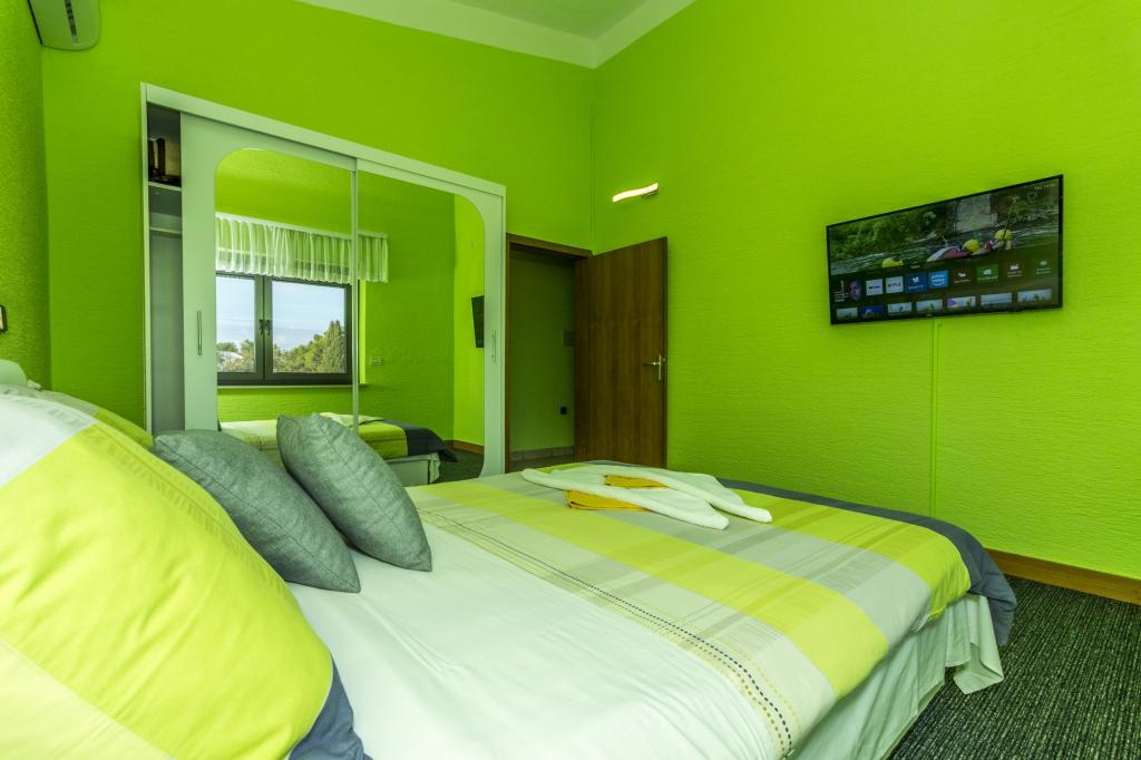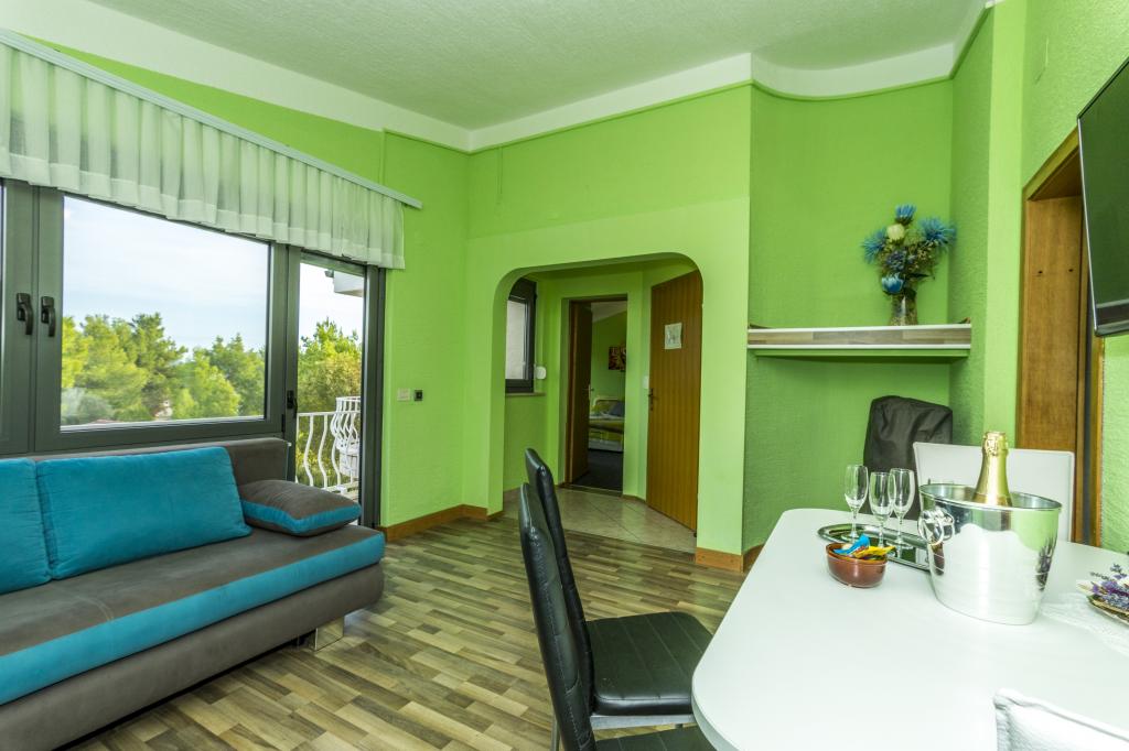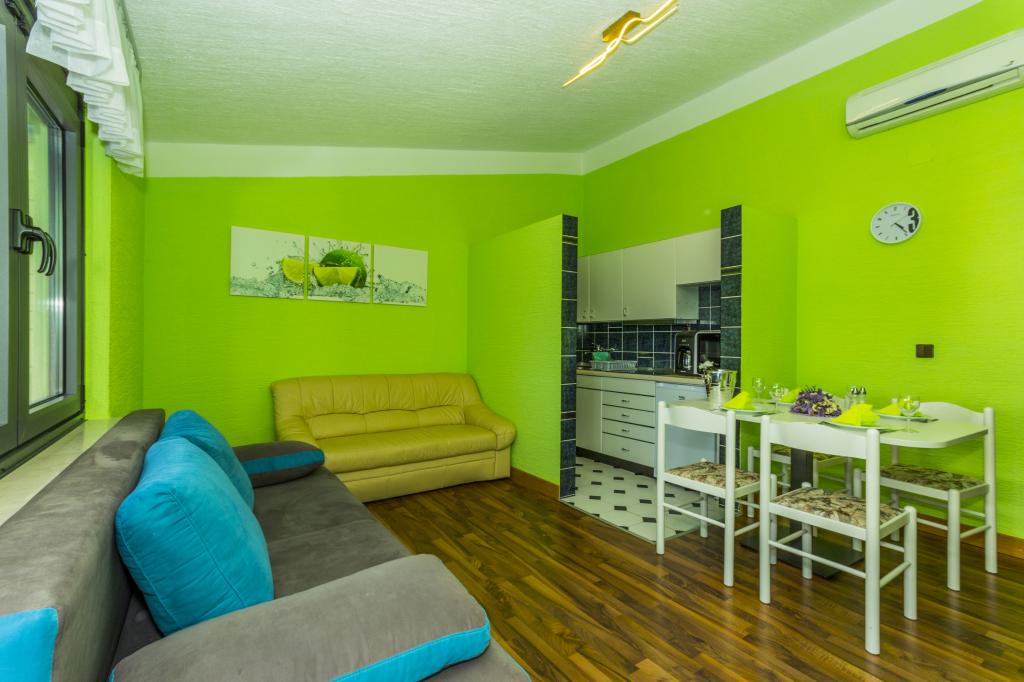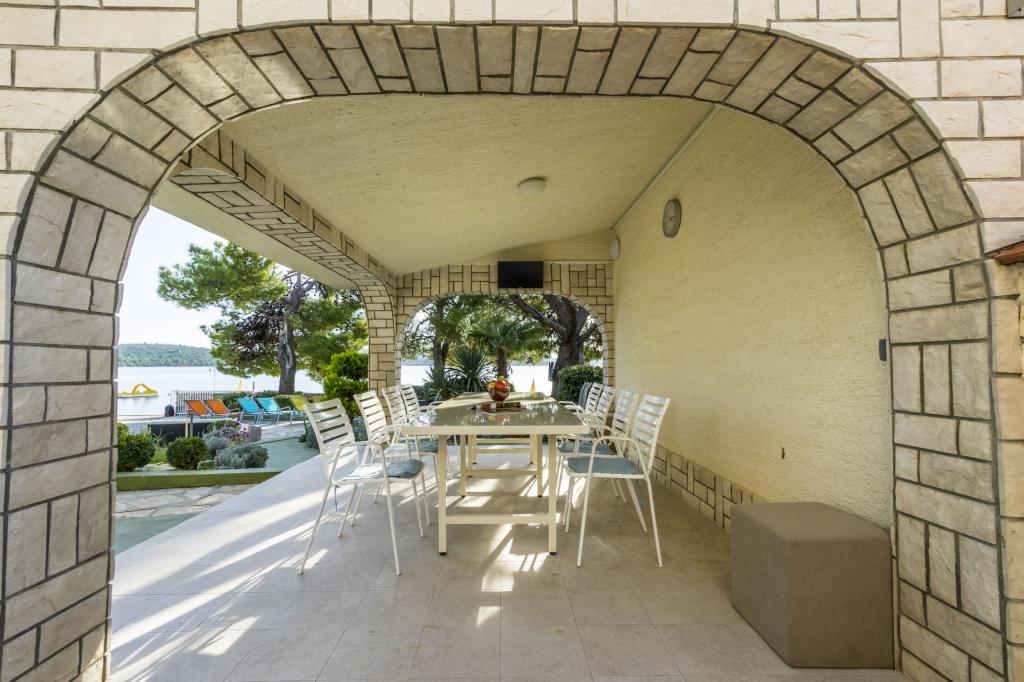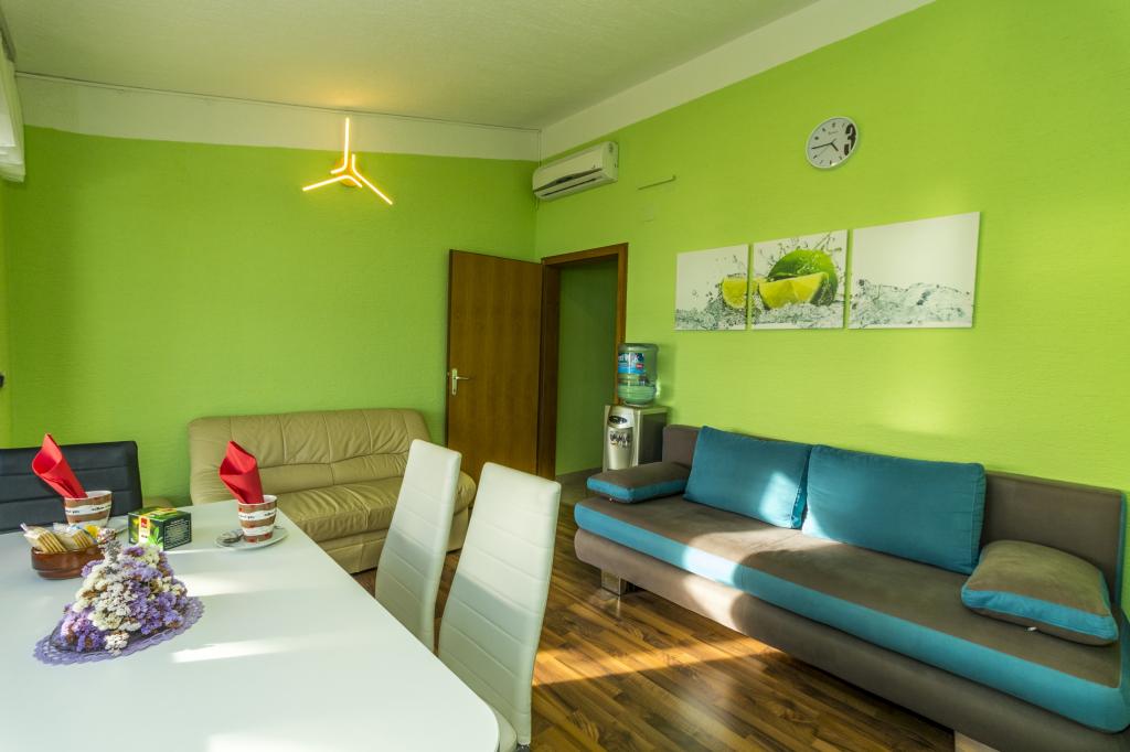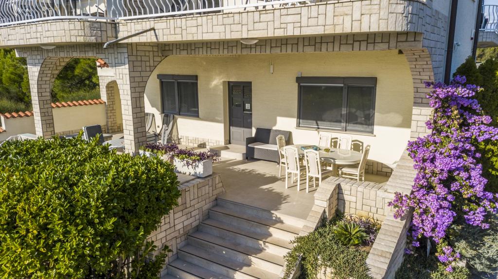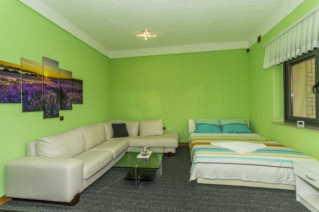 Villa Punta Royal is situated next to the sea in a quiet bay and has its own pebble beach. The sea is shallow and becomes deeper when it goes away from the coast, which is perfect for small children. In front of the Villa is a Mediterranean garden where you can enjoy the charms of Dalmatia and the Adriatic Sea. Everything is in one place, you do not have to worry with storing your belongings to go to the beach because your apartment is only 15 meters from the beach which is in front of Villa. Wireless internet is free and available in the whole Villa and the whole beach. Parking is next to the Villa and is free of charge for all our guests. Sun loungers and umbrellas in the Mediterranean garden and at the beach are provided for all our guests and are free. The apartments are modern and fully equipped for family accommodation. We are located in the middle of the Adriatic coast so that all the local attractions of Dalmatia close to us. Enjoy your vacation, while for you in Villa Punta Royal, always someone available 24 hours a day.