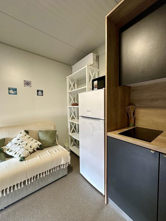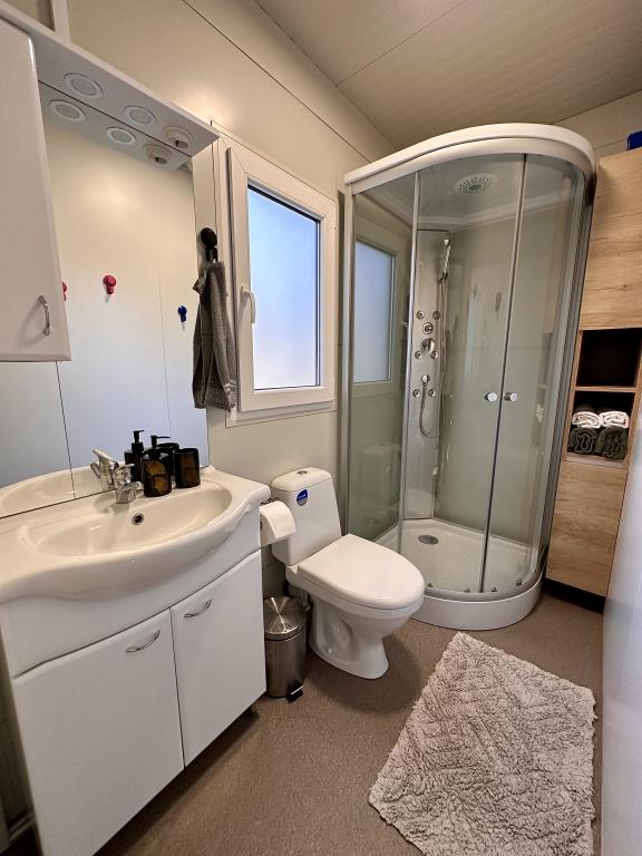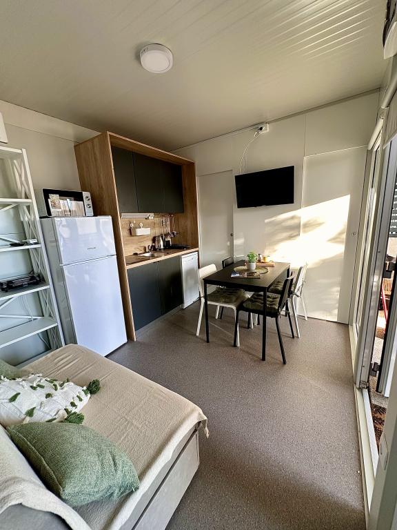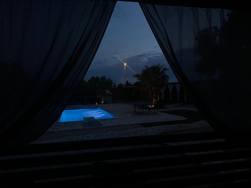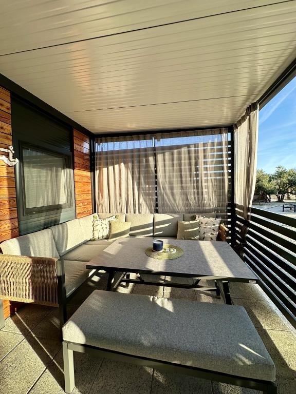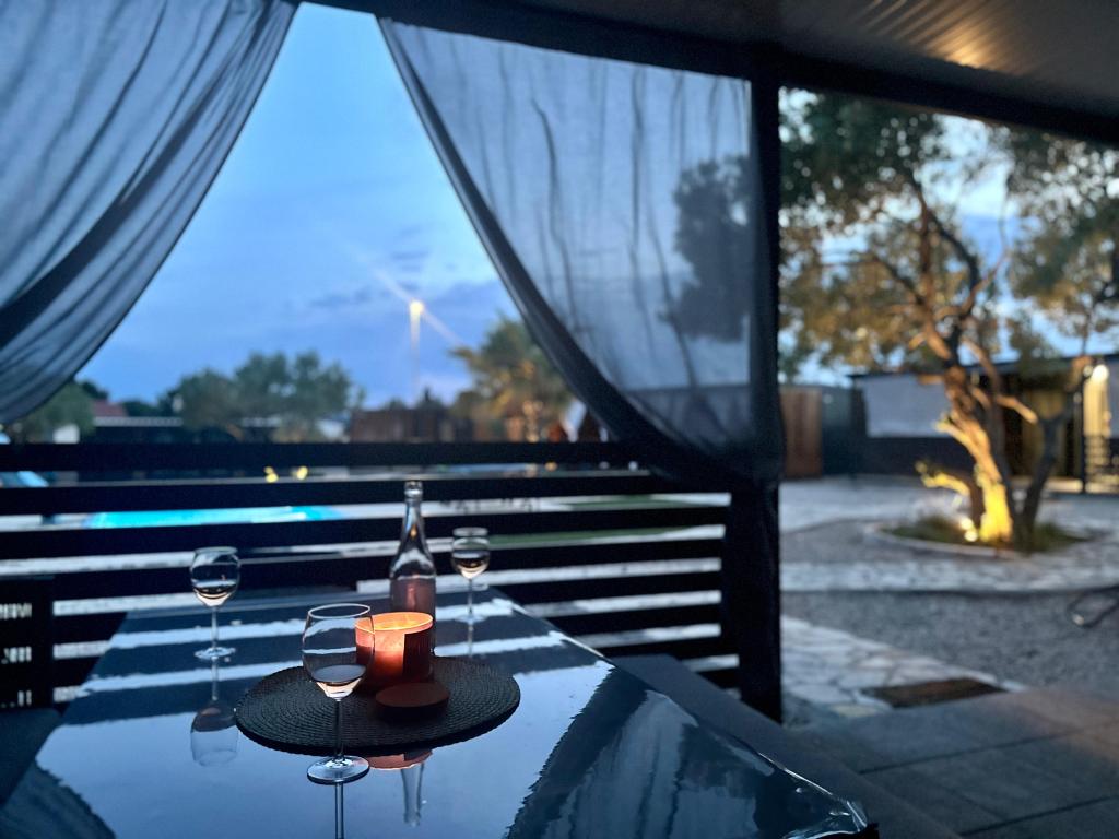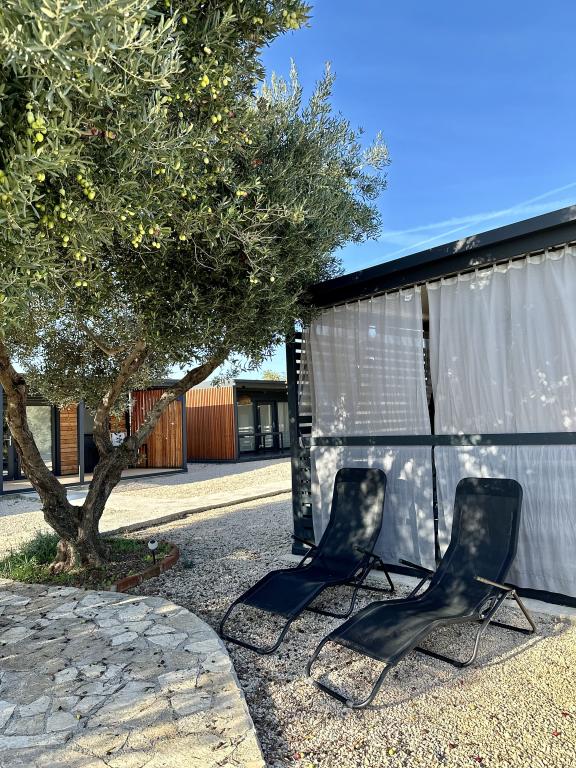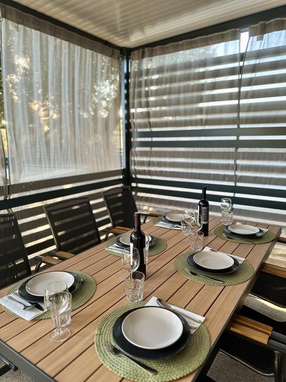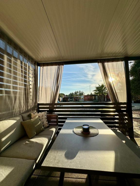 Mobile Home Maslina – Your peaceful oasis by the sea. Welcome to Mobile Home Maslina, a modernly decorated mobile home located in a quiet part of Pirovac, just 200 m from the beach. The house accommodates up to 5 people and has two bedrooms with a total of 4 beds, a living room with a sofa bed, an equipped kitchen and a bathroom. Enjoy the large covered terrace overlooking the pool – perfect for morning coffee or evening relaxation. Guests also have access to a parking space. Mobile Home Maslina is ideal for a family vacation, peace, nature and proximity to the sea. Experience the hospitality of Dalmatia and book your vacation today!
