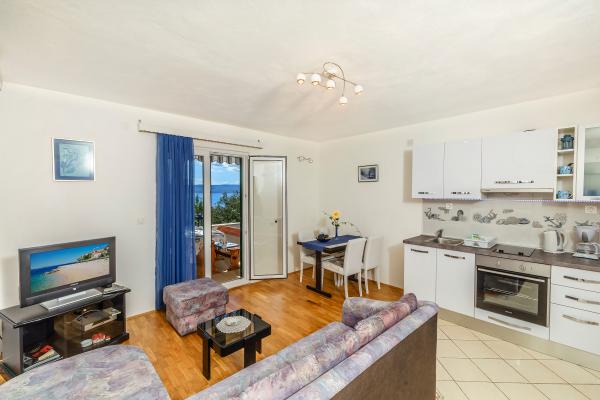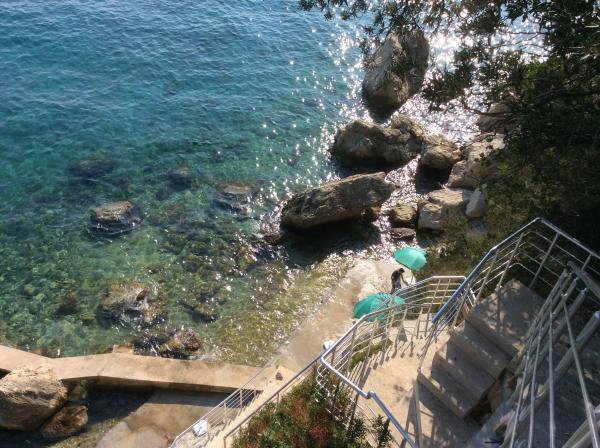 We had a wonderful, relaxing holiday. The studio is very nice and cozy with a great big balcony. There was even a drying rack. The landlords are very nice helpful people. Should you miss anything, it will be taken care of. Between the apartment and the stairs to the beach is a path that takes you to the harbor in a few minutes with a great restaurant where we got the best fish we have ever eaten. Everything was just great and again a big thank you to Jelena and Andro We'll definitely be back. thank your for the nice vacation