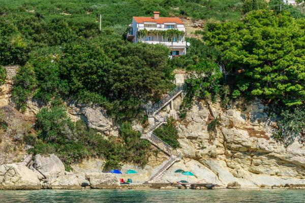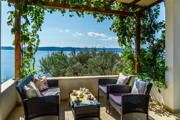 The apartment house AN J, A. is located in a quiet part of Pisak. It is built on the cliff above the morem, and in the shade of the evergreen olive trees. AN J, A. has its own access to the sea. and arranged concrete swimmers. 2 sloping beaches are within 3-4 min walk. To the center is only 5-6 min walk. The apartments are equipped with all the modern guests needed for a pleasant stay. In the woods, guests have an outdoor shower with hot and cold water, and a charcoal and charcoal grill. Each apartment has one parking space, and from the apartment it is possible to have a view on the parking lot. In our house are chosen guests who want to enjoy everything in the desert, beautiful sea view, the island of Brac, the Makarska Riviera and picturesque mountains above Pisak.