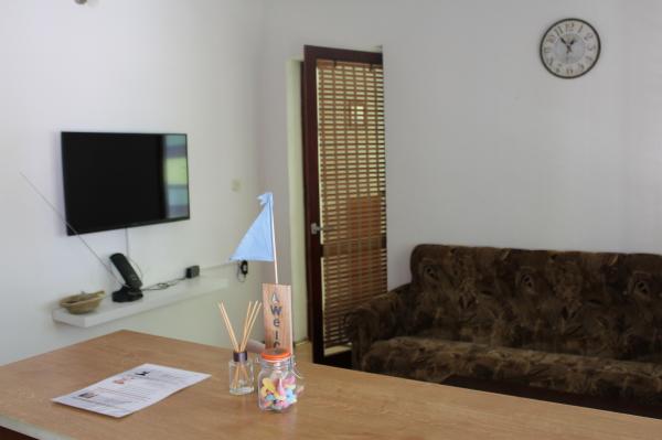 We had great apartment, whether, homemade wine, sea view, WiFi, peace, sleep, food and sea!