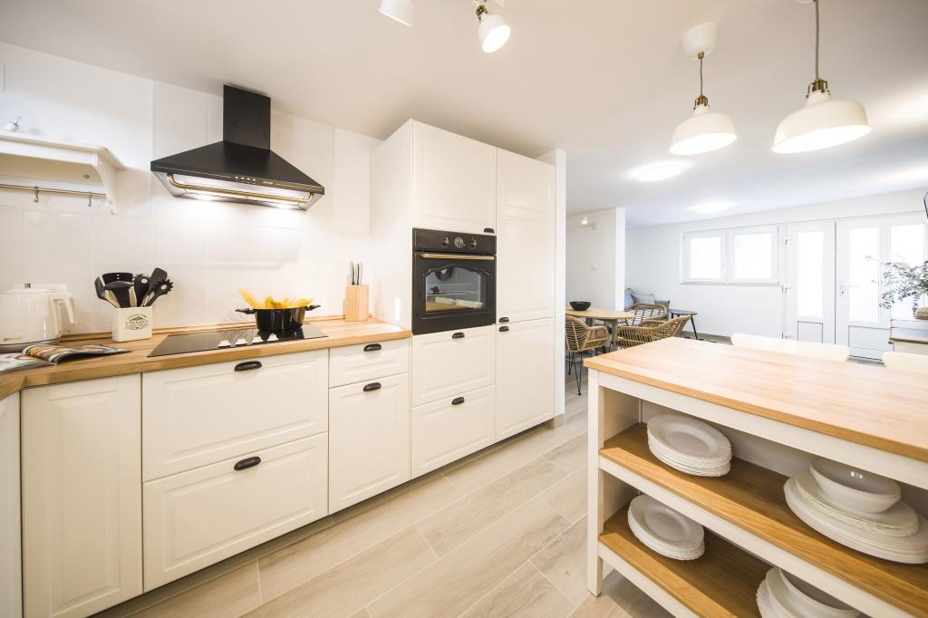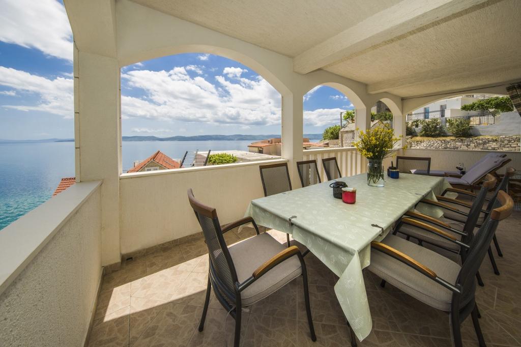 We used to have two large families with children in a large apartment 8 + 1. The description matched, the premises beautifully decorated, tastefully decorated, clean with practical equipment. We are very welcome, dishwasher + tablets, 2 refrigerators washing machine, oven and children TV and games. We also had towels available, which the housewife changed us after a few days. We really didn't miss anything in the kitchen - complete equipment. Great location - close to everywhere: the beach and the restaurant, grocery store right in front of the house, fruit, vegetables a few meters higher down the street. In the evening, a pleasant sitting with drinks and beer in the beach bar or on the terrace with nice sea views. We even saw dolphins from the terrace several times. The beach is clean with small round stones, the water is clear and pleasant. We completed a rafting trip on the Cetina river, a cruise on a cruise ship, climbed the castle in Omiš with a beautiful view, the Kotišina manor house and the Shrine of the Virgin Mary. One day we crossed beautiful lakes: Blue, Red and Green Lake. You can only bathe in Blue Lake. Mrs. Marica is very nice, characteristic and welcoming. The host again willingly helped us with grilling fish. Great stay. I heartily recommend.