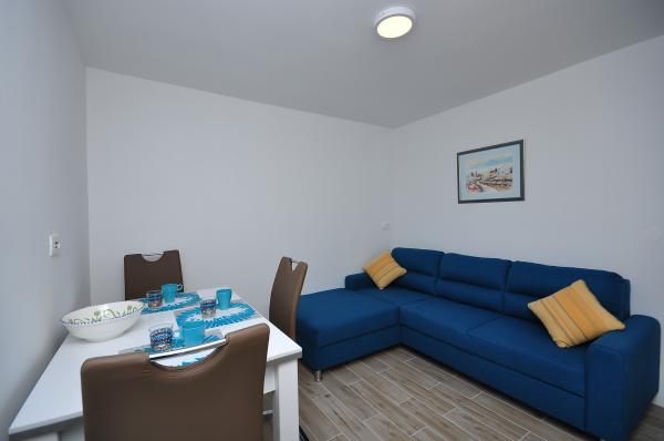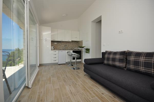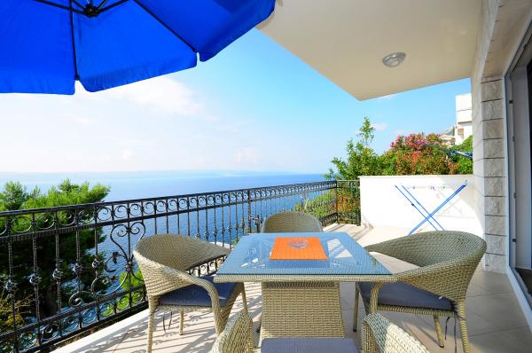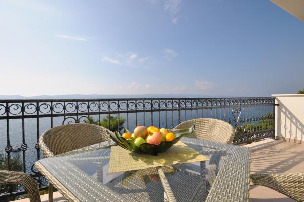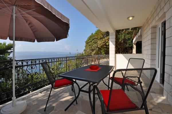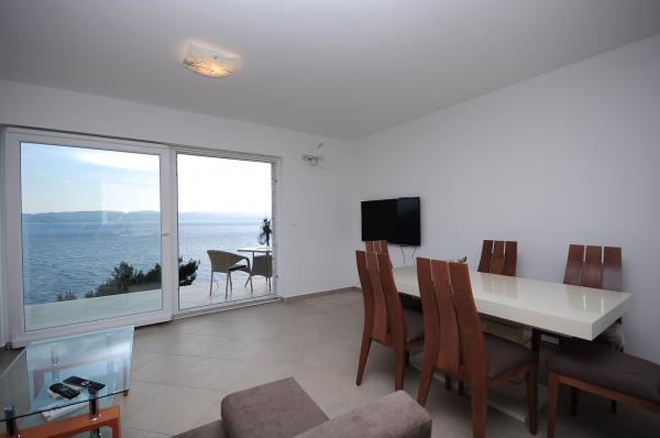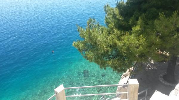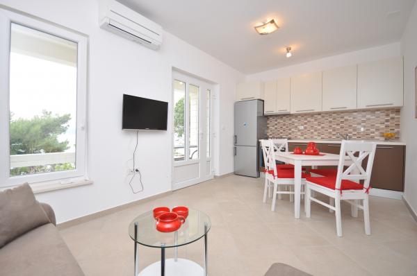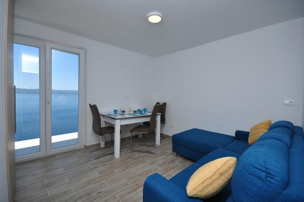 Modern and comfortable apartments first row to the sea (40m). Each apartment has a balcony overlooking the sea and the island of Brac. Below the house is a private entrance to the sea (concrete beach) and a private part for sunbathing and shade. The apartments have air conditioning, satellite TV, wifi. We have a secured parking space in front of the house. In the courtyard there is a shared shower and barbecue. The town center is 400m away (shop / restaurants). The nearest pebble beach is about 200m from the house while the largest beach is 400m away. The neighborhood is quiet. The towns of Omis and Makarska are very close (18 km), as are the islands of Brac and Hvar. You can enjoy activities such as diving, renting a boat and sailing. Ideal place for rest and relaxation.