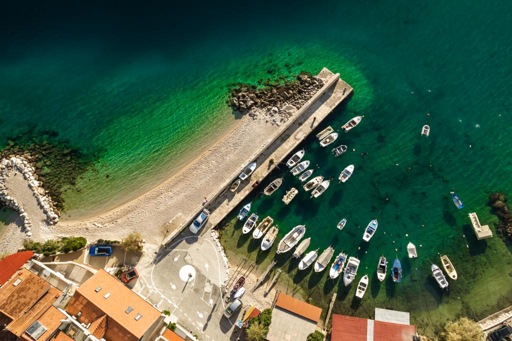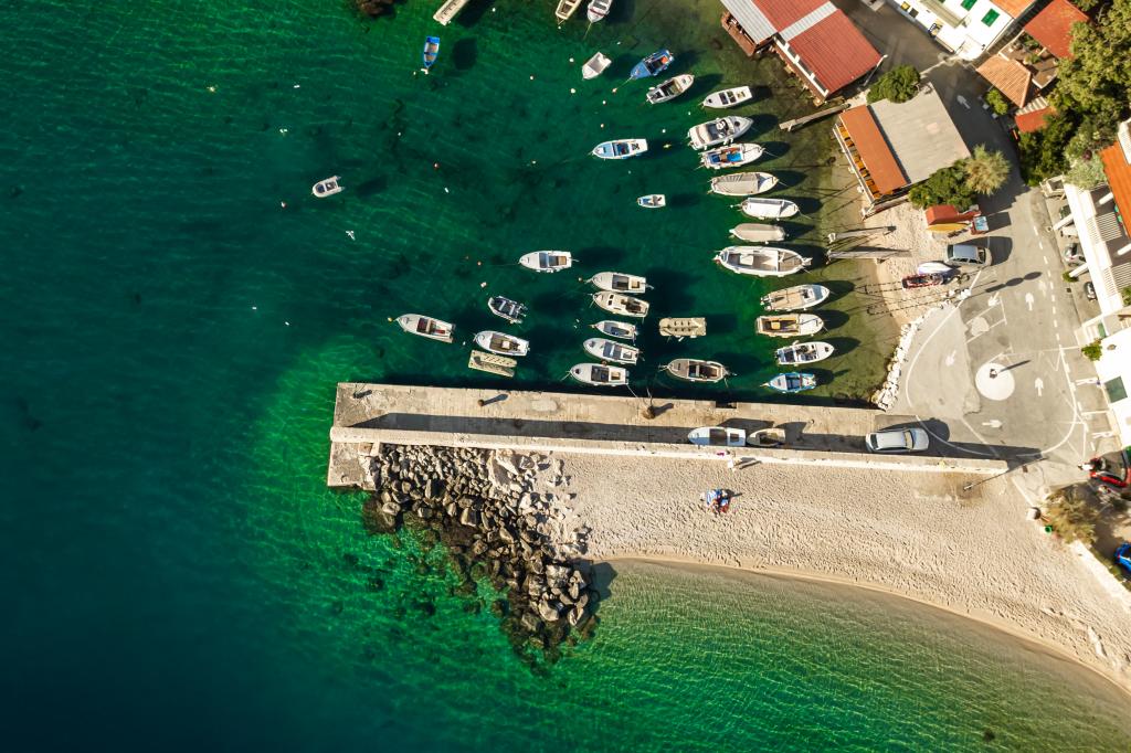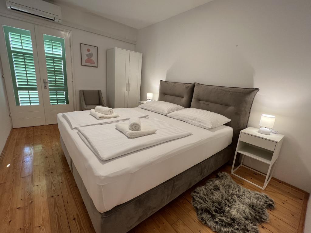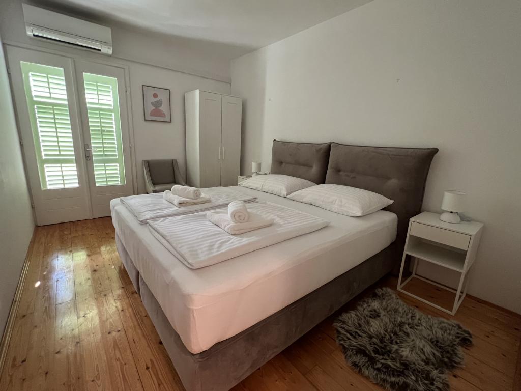 The idyllic Dalmatian Villa Stina is located in a quiet part of the fishing village of Pisak on the Omiš Riviera. The property is located 70 m as the crow flies from the sea, and offers a perfect vacation for 8 people who can be accommodated in 3 bedrooms equipped with spring box beds and one additional sofa bed for two people. All rooms and rooms in the house are air-conditioned with separate air conditioners. The house offers comfortable accommodation in a large living room that is connected to the kitchen with a spacious outdoor terrace overlooking the sea. The sea view is also offered from the superior room with a balcony. The remaining two rooms have an intimate view of the outdoor garden on the north side of the property. There is an outdoor barbecue at the back of the terrace. Free parking for 4 cars is located in front of the house and provides comfortable access for guests with luggage. The house is a few minutes walk from two beautiful natural pebble beaches. The distance from the town center and local shops is about 10 minutes walk.