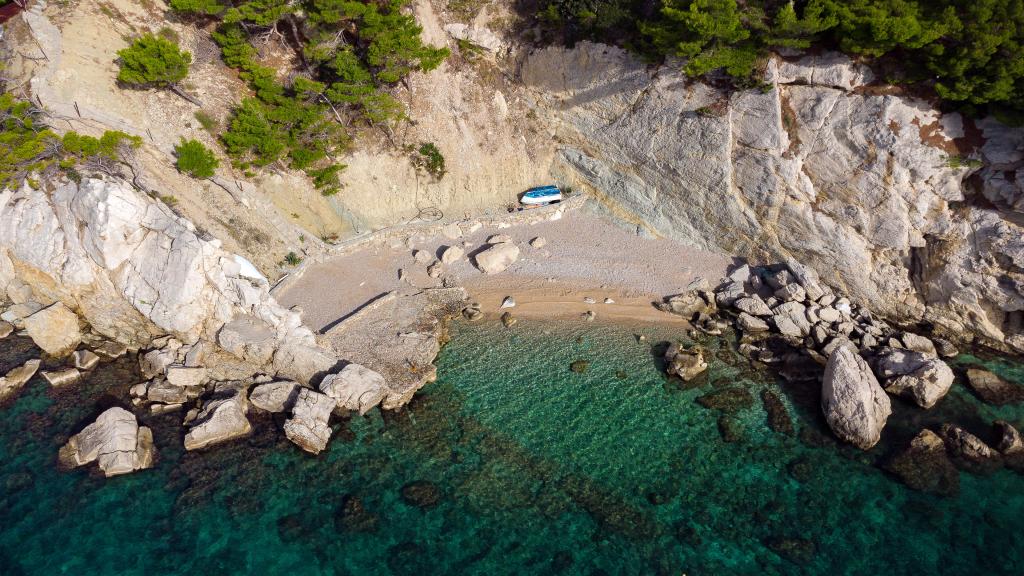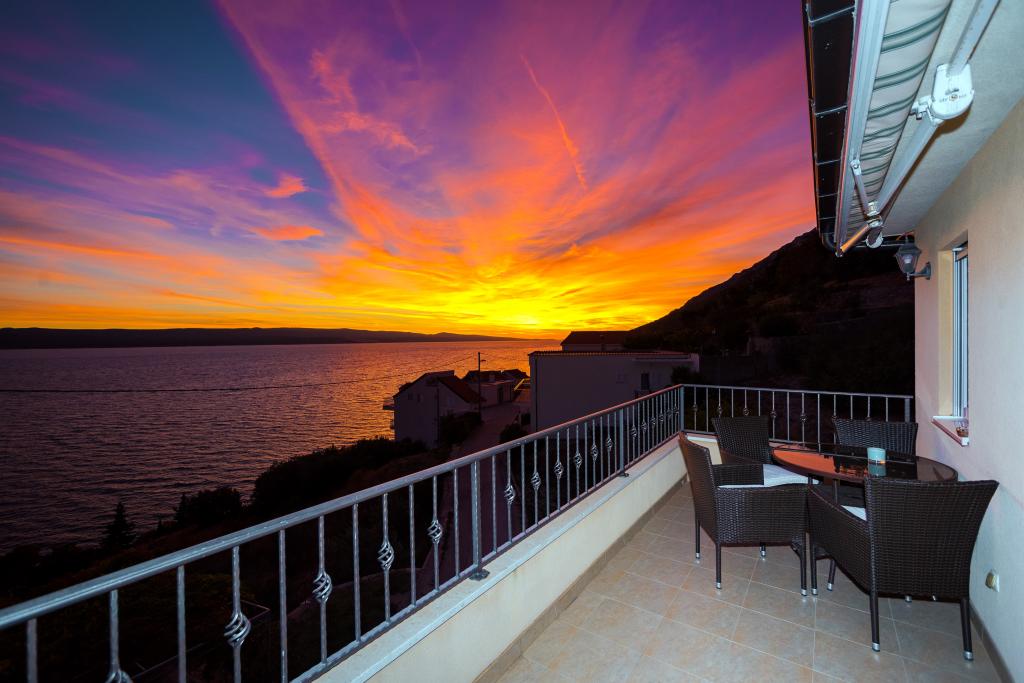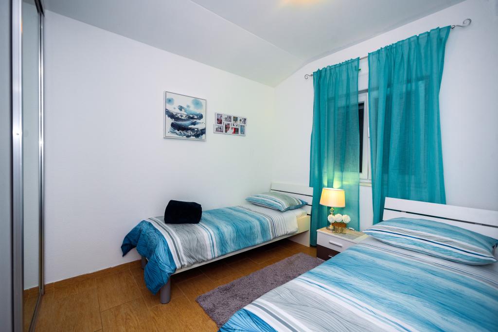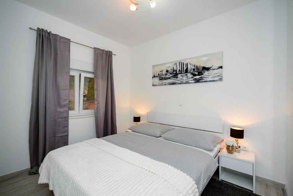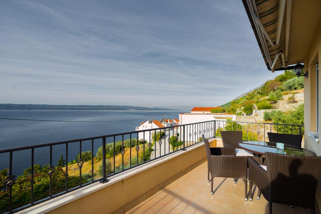 Vruja Villa is located in a small fishing and tourist village, Pisak between Split and Makarska. Pisak is ideal for family holidays and in love with sea and water sports. In Pisak you can rent a boat and go swimming to a nearby secluded beach or a full day excursion to the island of Brac. Villa Vruja has the possibility of accommodating up to 12 persons in two separate apartments of 4 2. Each apartment has two modern bedrooms, kitchen, living room, bathroom and a large terrace overlooking the sea, on the island of Brac. Both apartments have air conditioning, Wi-Fi, LED TV, satellite. Behind the house is a large gazebo with a grill. Villa Vruja away from the beach, 80m,