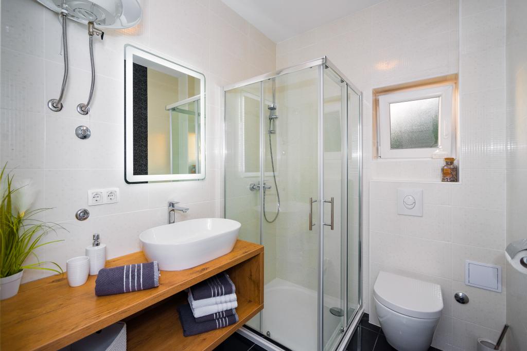 Great location, well equiped apartment (iron, ironing board, plenty of towels, dryer and even kettle, which are often hard to find in other hostels), clean rooms, tastefully decorated, nice, nice, large balcony with wonderful view , At the back of the house a place to grill and have fun spending time outdoors. Super contact with Miss Angela. Nice gift was also welcome - good Croatian wine and juice. Close to the sea, although the descent is quite steep, but the views and clean, intimate and beautiful, fairytale beach reward all (plus the evening there is no one here anymore!). You can also walk about 10 minutes to another beach without going down (but there are more resting places here). Please note that this is a very quiet place, so if you are looking for some entertainment you should have a car to visit the neighboring resorts. This is a great place for those who want to rest from the noise and noise, but is an inseparable feature of other seaside towns. If you want to spend your time in your own little villa, Villa Vruja is the perfect choice!