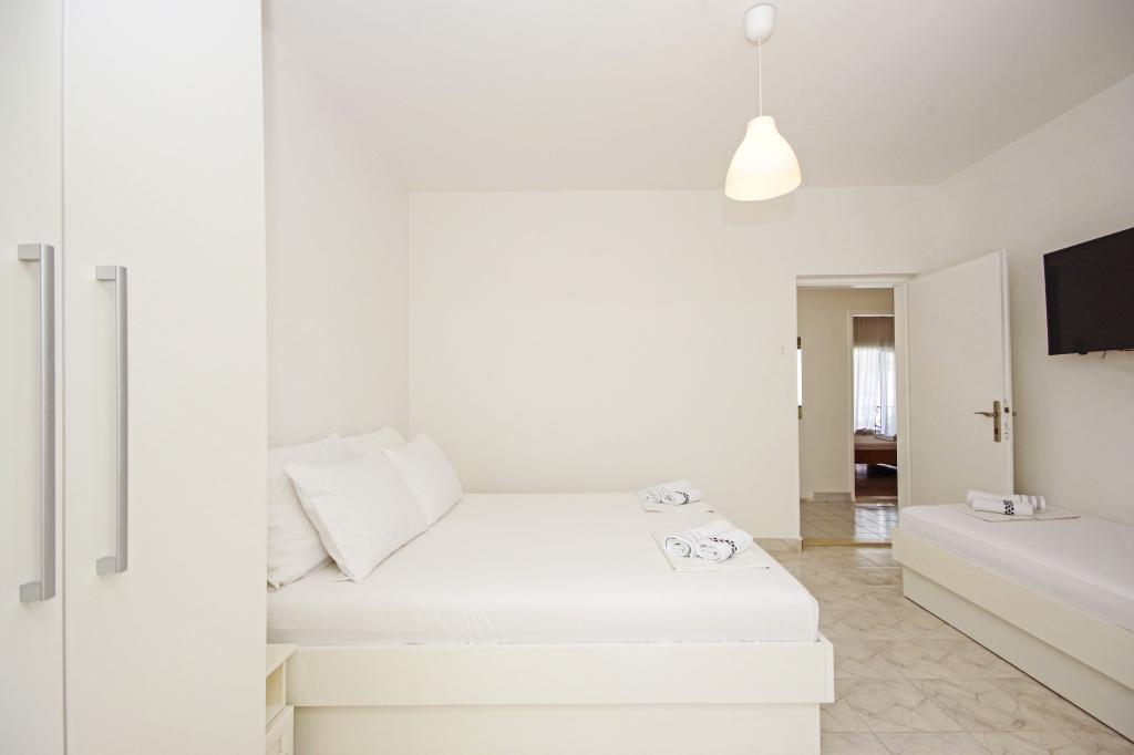 MK apartment is located in the quiet fishing village of Podaca, which has clear sea, mild climate and beautiful beaches. The apartment consists of 2 bedrooms, a large kitchen with dining room, one small balcony and a large one with a sea view. It is located on the 1st floor of the house and covers an area of 100m2. Each bedroom has a double bed and a third bed, as well as a separate bathroom and air conditioning. It is 80 meters from a beautiful concrete beach, and only 200 meters from a natural pebble beach located in the Vala bay. Podaca is connected by highway to cities such as Makarska (30km), Split (98km), Dubrovnik (115km), and nearby is the sanctuary of Međugorje (55km), Kravice Waterfall (65km), and the city of Mostar (85km). It is connected by a promenade to nearby towns such as Zaostrog, Brist and Gradac. Guests have free parking, free WiFi and use of a shared fireplace. Bed linen and 2 towels per person are provided in the apartment. We look forward to your arrival and wish you a pleasant stay and vacation.
