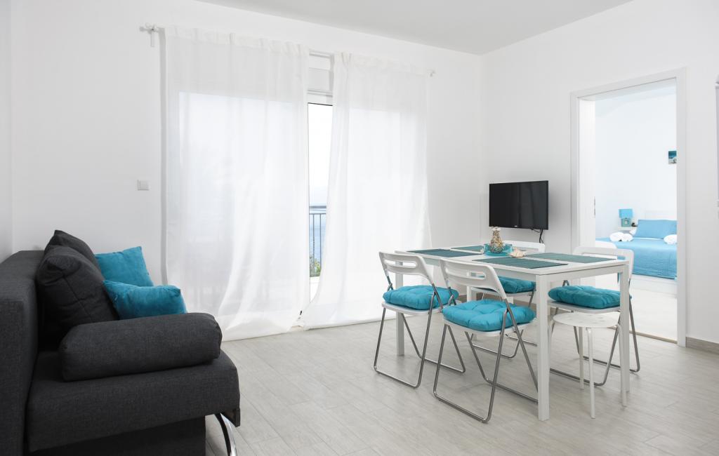We welcome you to the Apartments Anči, located in Dalmatian village Podaca, small picturesque place with a long tourist tradition, clean water, mild climate, and beautiful beaches. It is an ideal place for a pleasant family holiday, yet its geographical location is suitable for one day tours to near cities; Dubrovnik, Mostar, Makarska, Split, pilgrimage Medjugorje, island Hvar and peninsula Pelješac. The house has four apartments with capacity of about 15 people. It is located near small pebble beach, placed in-between gorgeous natural rocks, far from crowds and main road. All apartments have terraces with a sea view, air conditioning, unlimited internet access, and reserved parking space within the property surrounding the house.