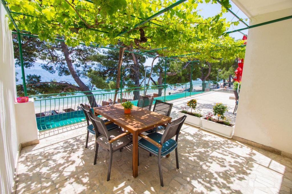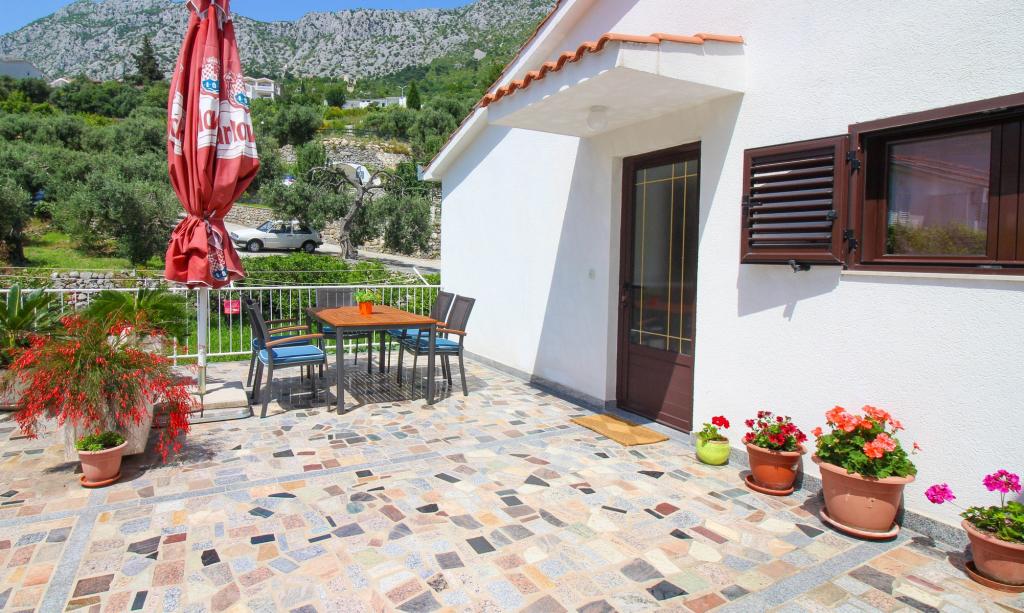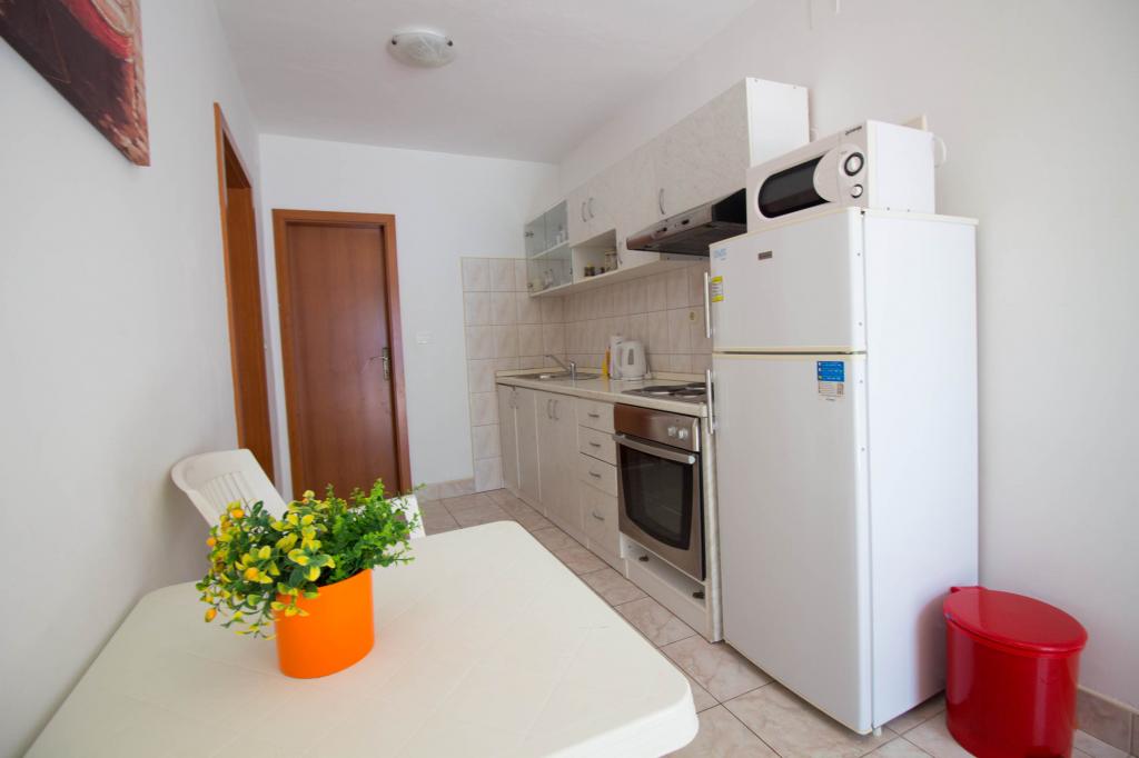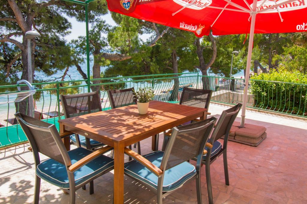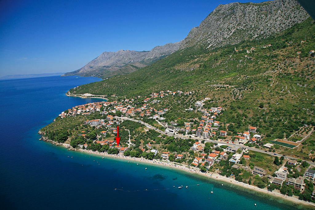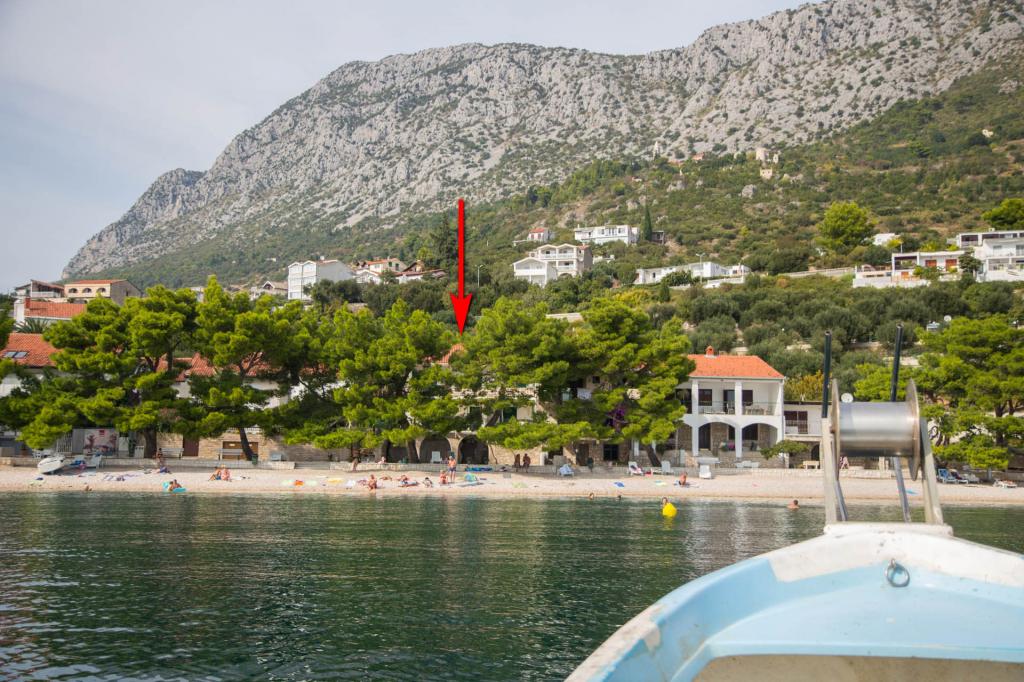 Apartments Kosović II are located on a family estate in Podaca, famous for its great tourist tradition. Its location is ideal for families with small children since the sea and beach are placed almost next to the house (about 10 meters), far away from the crowd and the main road. In front of the house there is the pebble beach having a lot of natural shade. Behind the beach there is a newly built 5-kilometer walkway ideal for evening walks and relaxation, but also for tourists who prefer a more active holiday with running, rolling and cycling. All 3 apartments have a separate entrance, air conditioning and access to wireless internet (WIFI). Their capacity is 14 beds and 2 auxiliary beds. Five parking spaces are insured within the property that surrounds the house in a designated place. The host Mr. Ivan Kosović runs quiet family restaurant Mendi with a tradition of over 35 years. The restaurant offers grill specialties but also seafood and various types of pizzas.
