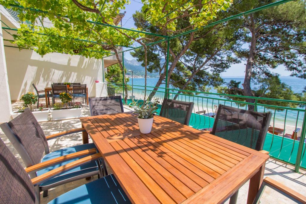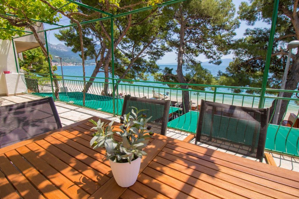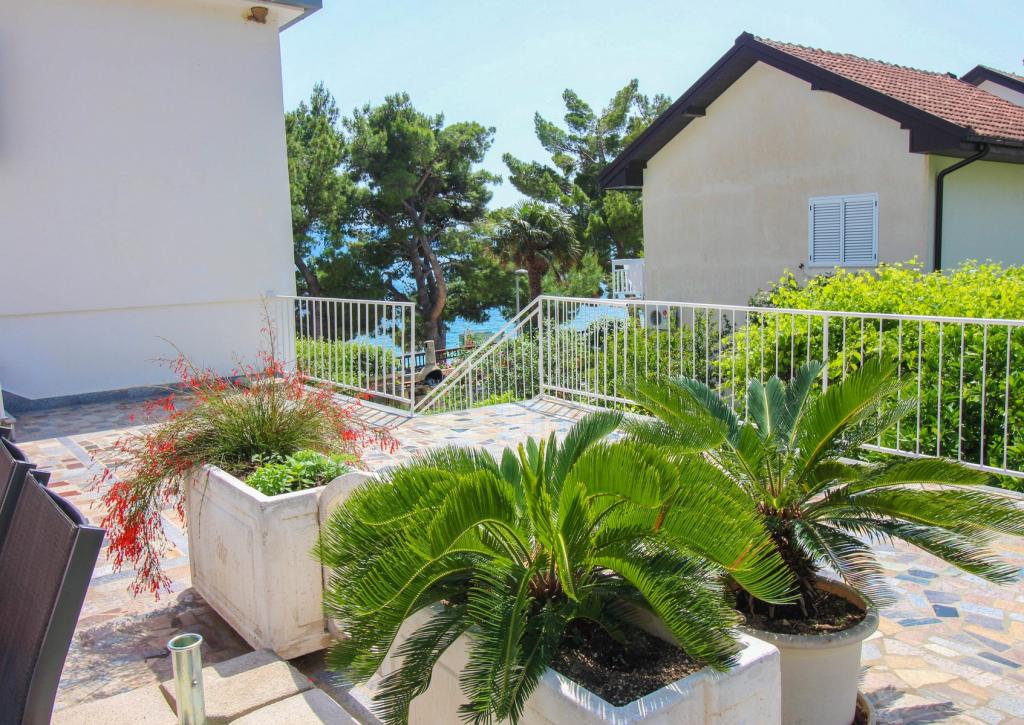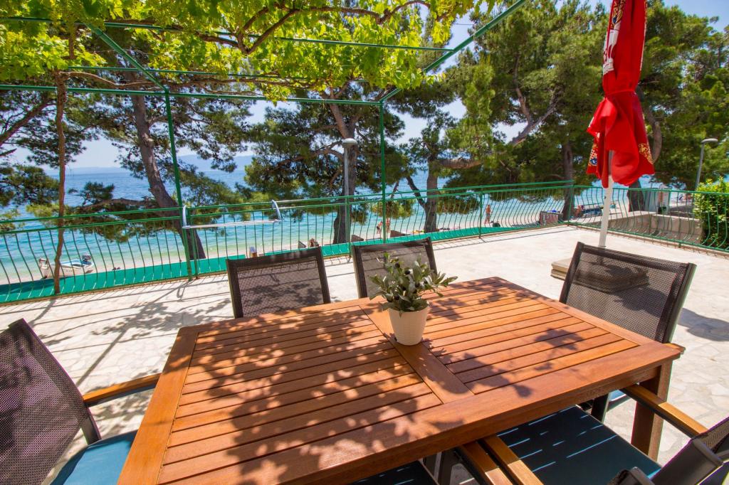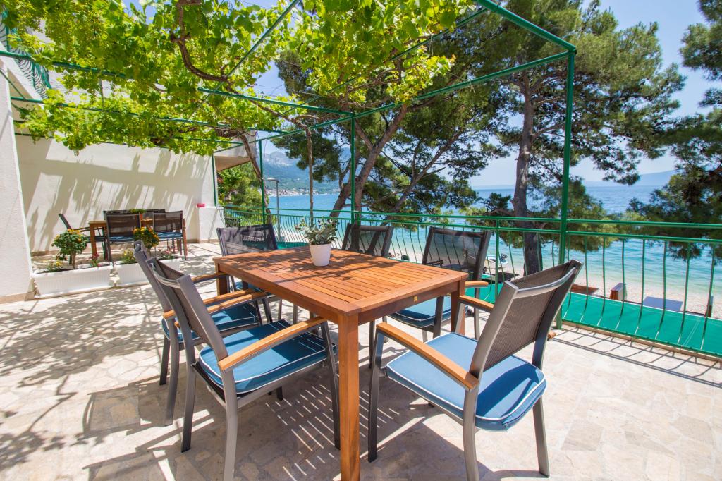 Apartments Kosović II are located on a family estate in Podaca, famous for its great tourist tradition. Its location is ideal for families with small children since the sea and beach are placed almost next to the house (about 10 meters), far away from the crowd and the main road. In front of the house there is the pebble beach having a lot of natural shade. Behind the beach there is a newly built 5-kilometer walkway ideal for evening walks and relaxation, but also for tourists who prefer a more active holiday with running, rolling and cycling. All 3 apartments have a separate entrance, air conditioning and access to wireless internet (WIFI). Their capacity is 14 beds and 2 auxiliary beds. Five parking spaces are insured within the property that surrounds the house in a designated place. The host Mr. Ivan Kosović runs quiet family restaurant Mendi with a tradition of over 35 years. The restaurant offers grill specialties but also seafood and various types of pizzas.