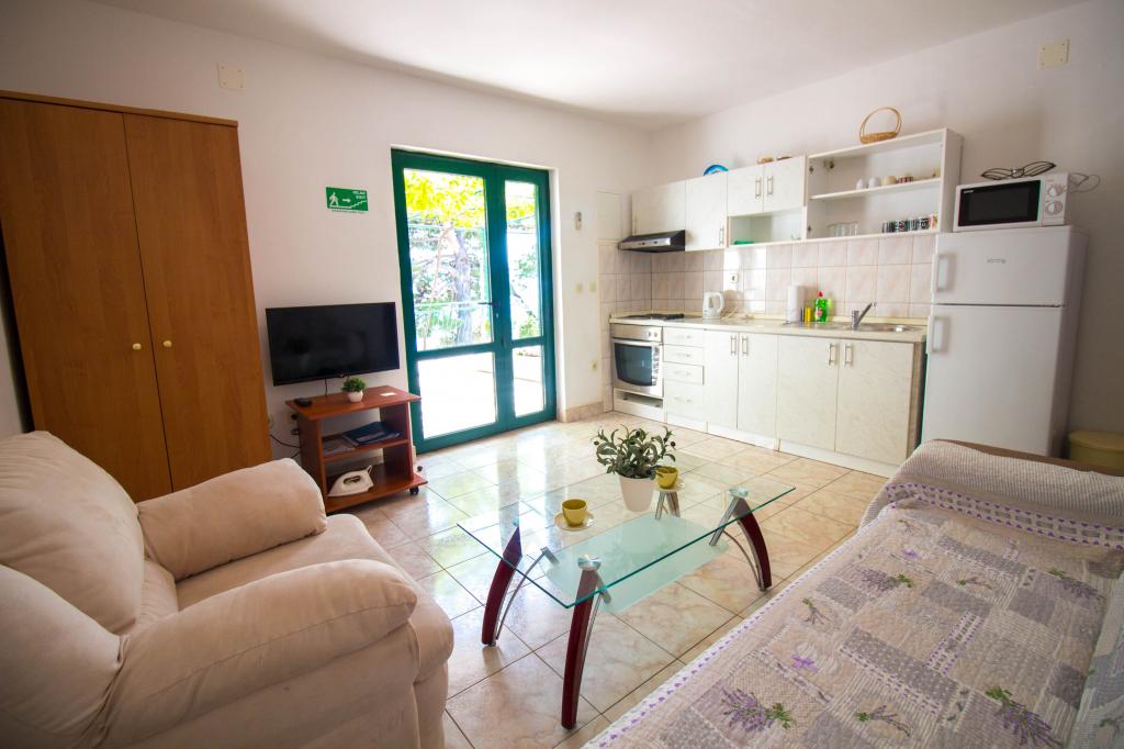 Read more Accommodation units- For longer stays in the same unit, bedding is changed every 7 days, and towels more frequently, if necessary. - Daily rent, tourist tax, bed linen, towels, equipped kitchen with necessary dishes and utensils, use of water, electricity and gas, air-conditioning, wireless internet and parking place are included in the price. - The advance payment is 30% of total price and it is paid by cash transfer to the bank account. The rest of the money (balance money) should be paid on arrival.
