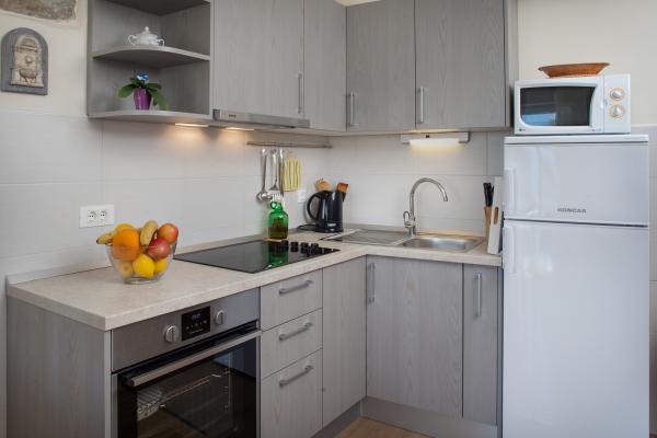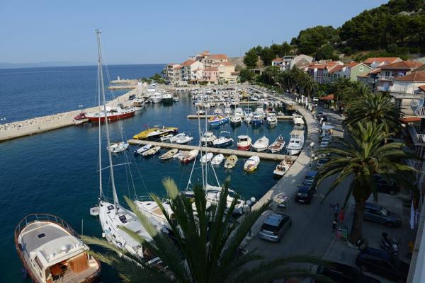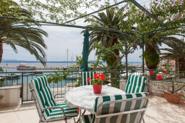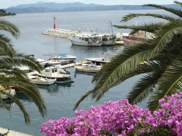 The apartment is located in the most beautiful part of Podgora, the old port with a beautiful view of the harbor and the islands of Hvar, Korcula and Peljesac peninsula. Comfortably furnished, with two bedrooms, a fully equipped kitchen, living room, bathroom, balcony and a spacious terrace surrounded by ancient trees. Parking is provided and included in the price. Nearby there are traditional restaurants with first-class food.
