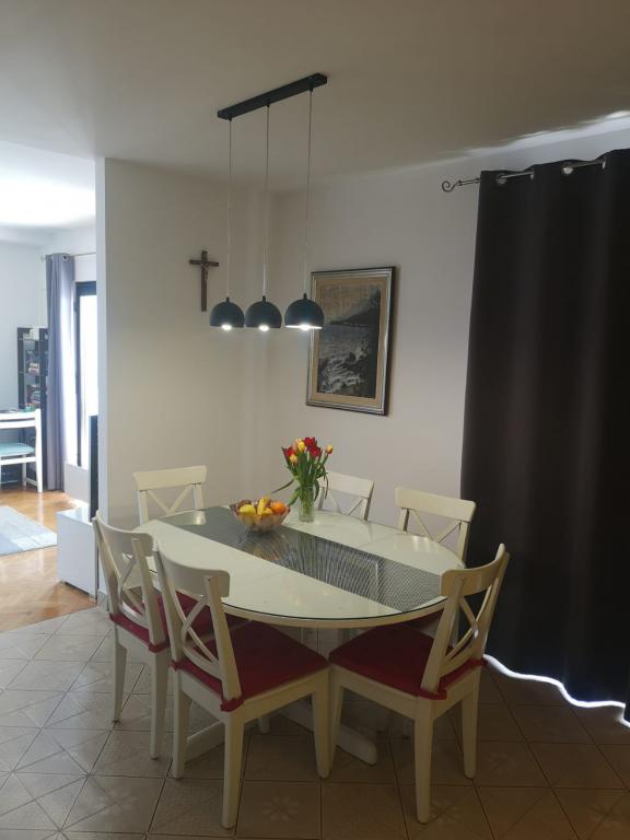 We stayed in the apartment for two weeks. Spacious rooms, dining room, terrace and two balconies. The apartment is equipped with appliances - washing machine, dishwasher, microwave, stove, oven. Very close to the beach, sea view, owners extremely nice. In addition, a beautiful place, not too crowded, where everyone can find something for themselves. Hope to come back again!