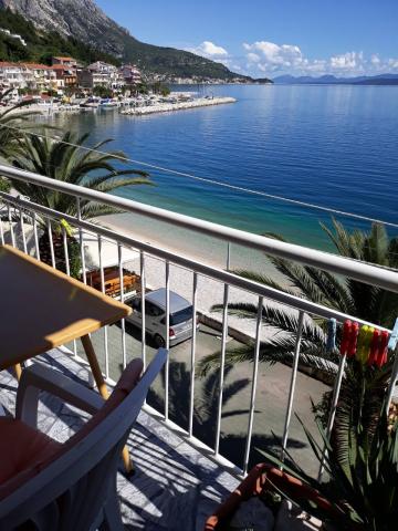 In the quiet bay of Čaklje (Podgora) there is a house with apartments (ČAUSEVIĆ) first row to the sea. The beach can be reached by crossing the main road - in 1 min. . The apartments on the second floor were built in 2005 and the apartment on the first in 1999. All three apartments have large terraces - about 12 m 2. The apartments have air conditioning. Special offer weekend house a-4. Suitable for young couples if you like the atmosphere of antiquity. There are houses in the area that are over 100 years old. The settlement is called Vruja, and the name of the house is Letišče. Parking for two cars is provided.