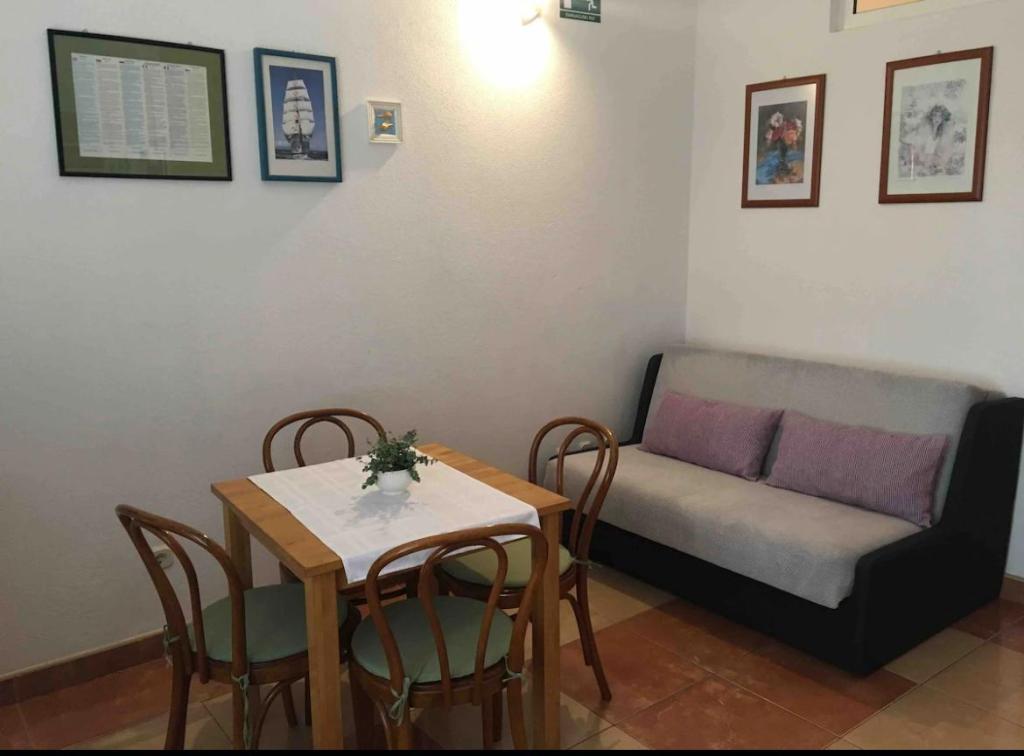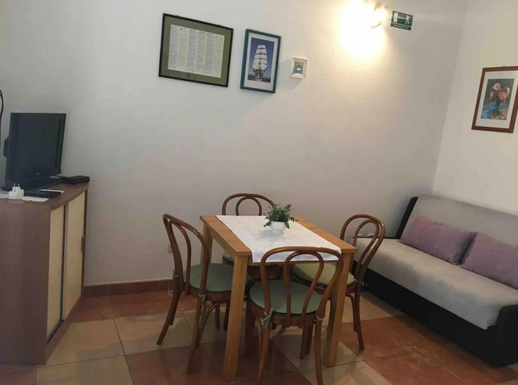 The apartment can accommodate 5 people. It consists of an equipped kitchen with all basic utensils for cooking and preparing meals. Two bedrooms with double beds, a bathroom with clean towels and an extra bed, or the bed for one person is a sofa in the living room. In front of the apartment is a small terrace that is hidden by plants from prying eyes from the street. Guests from the apartment can use the barbecue located behind the house.