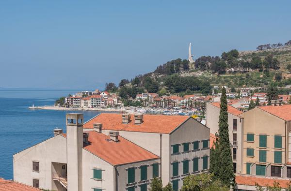 The house is in a wonderful and peaceful environment, where you can at the same time, on the peak of the season enjoy peaceful nature, in the morning bird singing and in the calm of the day, the forest, the sea and the sunset. The position of the house especially attracts lovers of photography, and a special part of the day is the sunset. From the house is a wonderful view on the center of the old village and little fishermans port, and as well on the impressive monument “Seagull wing”. From the balcony it is magnificent view on famous island Hvar and Brač. Above the house is the road which leads to a popular place that every visitor cannot miss, a “Sky walk” on Mountain Biokovo, which is one of the highest mountains on the Adriatic coast. Podgora is a small but cute fishing village where you can experience beauty and tradition.