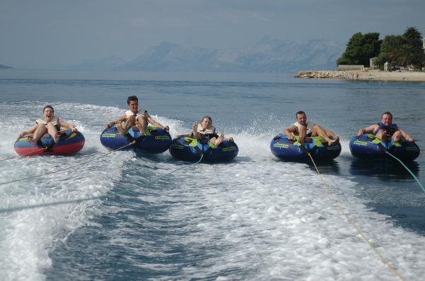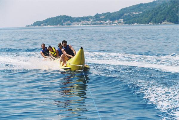 Residential tax is included in price.We offer a possibility of renting a boat Quick Silver 630 with engine 150 hp Suzuki, 5m boat with engine 5HP, pedal boats, jet-skiing, paragliding, banana rides, tubes, big mable, aqua park. For our guests, the price of water sports is 20% smaller.