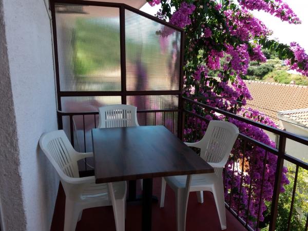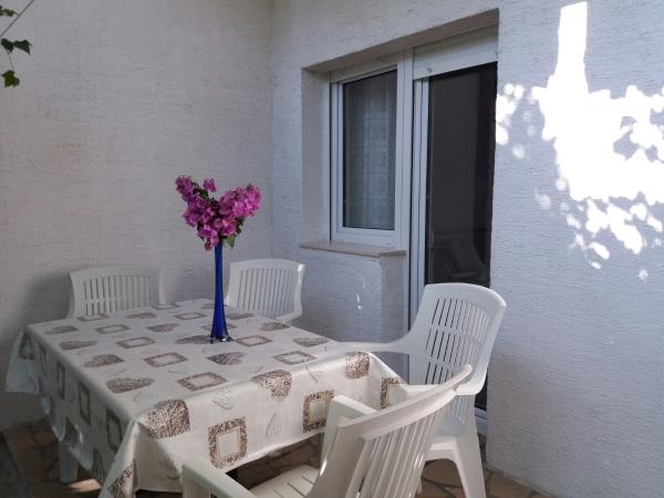 The property is a short walk to the sea, the beach, the center and the shop. All apartments and rooms have balconies overlooking the sea and the whole place. Apartments and rooms are air-conditioned with WI-FI, parking. In the garden of the house there is a grill which is available to all guests, in the garden there is Mediterranean vegetation (mandarin, lemon, fig, pomegranate). Nearby there is a fenced playground for free use.