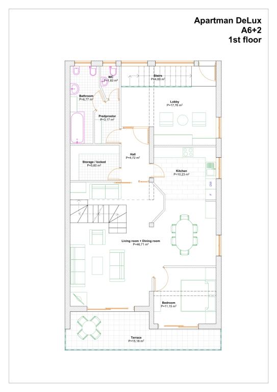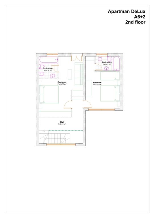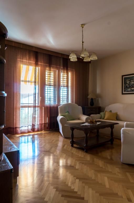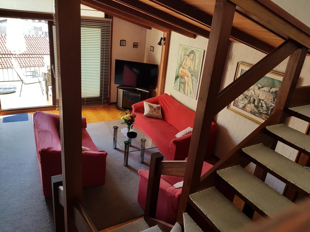 The apartments are located in a family house in the very center of Podgora, 50 meters from the central beach. Within a radius of 100 meters there are restaurants, cafes, shops, post office, pharmacy, doctor, children's park... The apartments have their own parking space which is included in the price. All utilities are included in the price. The apartments have their own free unlimited Wi-Fi Internet and satellite television. The apartments are air-conditioned (all rooms). Apartment 6+2 DeLux is a luxuriously furnished two-story apartment. On the first floor there is a large living room, kitchen, dining room, one bedroom, bathroom, toilet, large terrace with seating and sea view. On the second floor, which is accessed by an internal staircase, there are two large bedrooms with private bathrooms. Apartment 4+1 Classic is a large apartment with two bedrooms, bathroom, living room, kitchen with dining room and a large balcony. For all information we are at your disposal via e-mail or mobile phone.