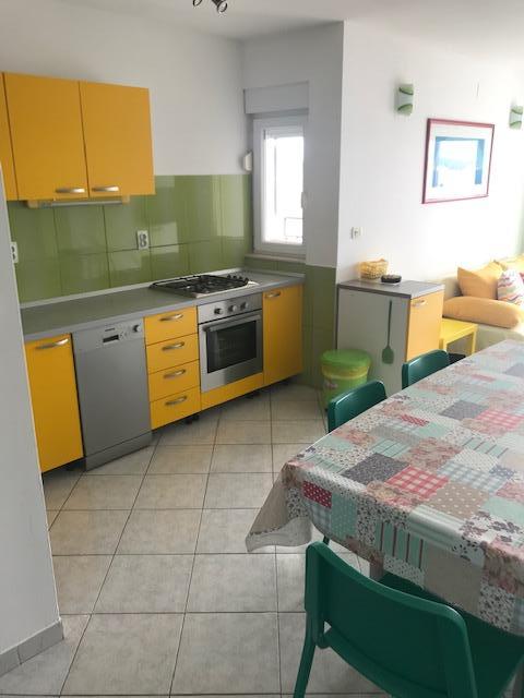Semi-detached family house in the quiet bay of Čaklje, belongs to the municipality of Podgora, but it is isolated and far from the summer hustle and bustle! The house is fully equipped with everything necessary to make your annual vacation a home-away-from-home! We have been dealing with tourism and rentals since 2009, and we have gradually decorated every corner of our house with great love! The large apartment (Zuto Zeleni) has everything necessary for daily life. A spacious terrace where you can wait for the day to wake up or enjoy the evening...Zuto Zeleni apartment is 60 steps from the sea. The small apartments on the 2nd floor of the house are ideal for married couples or families with small children. They are only 80 steps away from the sea. Purple Green and Red Black apartments have the possibility of using a washing machine. Our guests have been coming back for years and enjoy the beauty of Caklja together with us! We, the hosts, are located in the attic and are at your service to make your annual vacation every year like your dreams! You are welcome! Jadranka, Mate, Lili, Vice and Viki