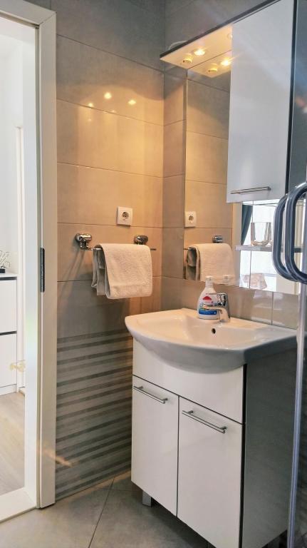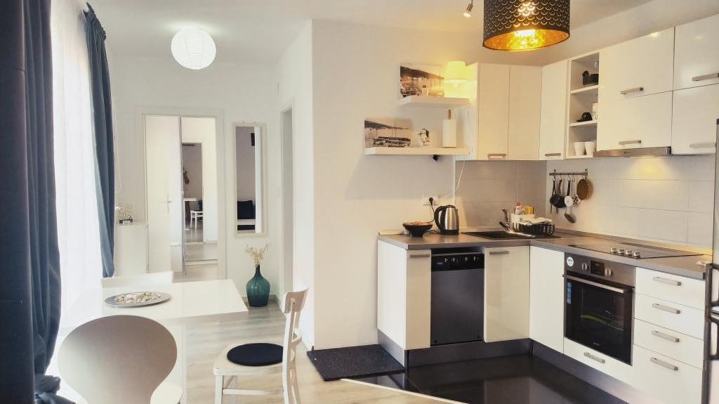 I have stayed twice with my wife in both apartments and I must say that they are very spacious, tidy, comfortable, modernly designed with a functional kitchen. They have a nice balcony overlooking the sea, only 80 m away from the beach. The hosts are very kind and friendly. All praise from Aida and Salih.