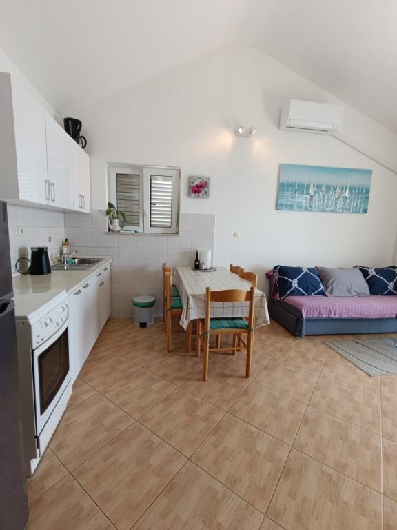 Apartments in the first row to the sea. Every room has a sea view. The beach is in front of the house. Parking (one space per apartment) is located in front of the house and is included in the price. Two restaurants and a shop nearby. The facility is located in a quiet part of town, 15 minutes' walk from the center. The nudist beach is outside the village and 300 meters away.