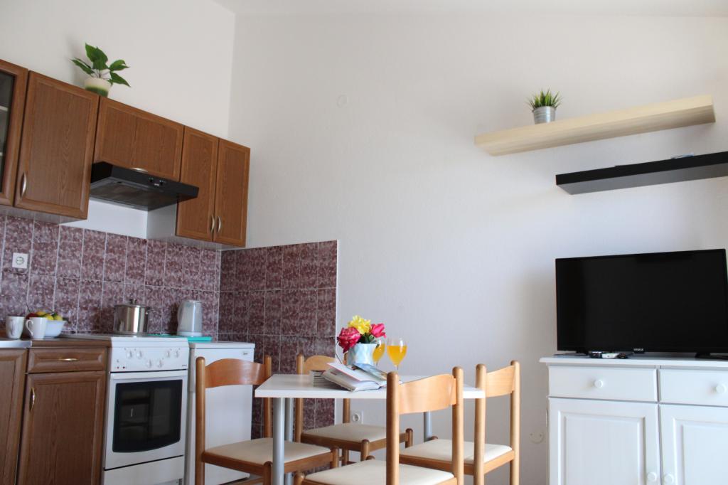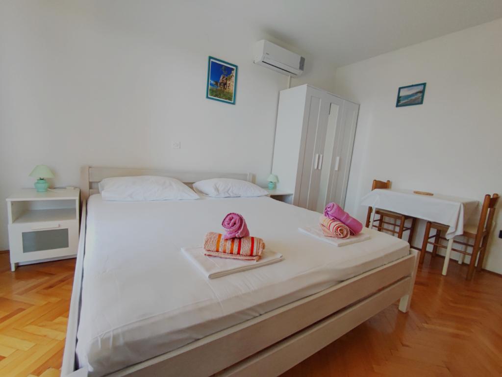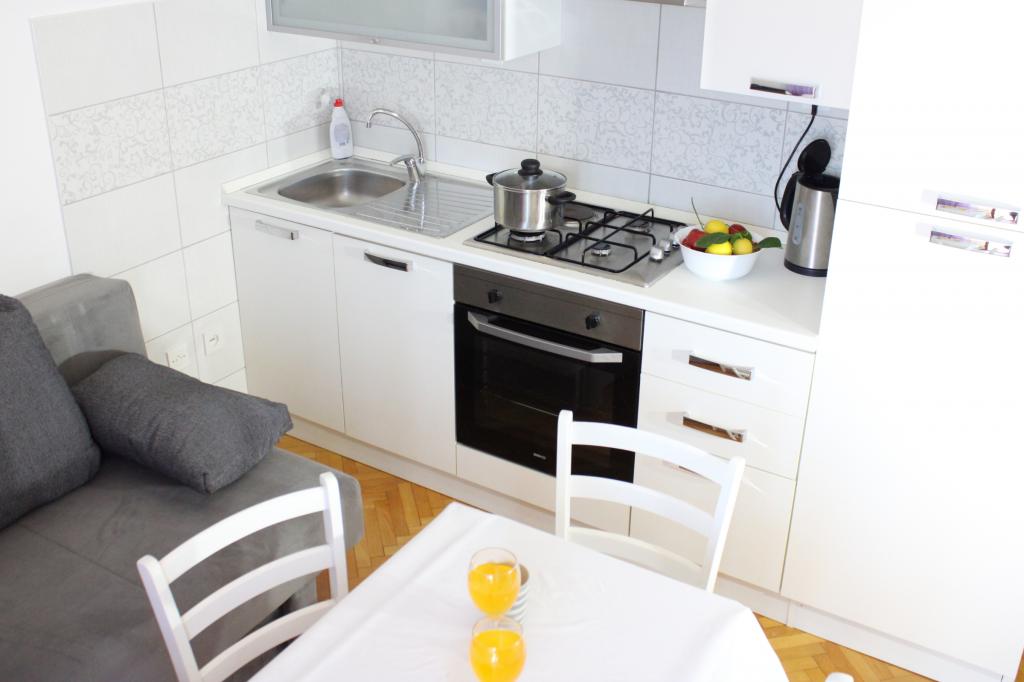 Apartments Slaven is situated in a quiet part of Podgora, only 150 meters from the beach, sports complex and a children's playground. Inside the apartment there is air conditioning, satellite TV, free internet access, a fully equipped kitchen with an oven and stove, bedding, towels, bed, bathroom with shower, sunny balcony (sea view or mountain), parking and cots for baby on request . The common living room is available for guests and is located on the ground floor, is equipped with satellite television, playing cards, and so on. The grill can be used without problems on request. The bus stop is located 200 meters from the house, the center of Podgora is at a distance of 400 meters. In the center and along the way guests can find a bank, cafes, shops, markets, souvenir shops, and so on. The doctor is only 100 meters away game, but the entrance to the Park is only 3, 5 km from the apartment Slaven. The town of Makarska is 7 km north of Podgora.