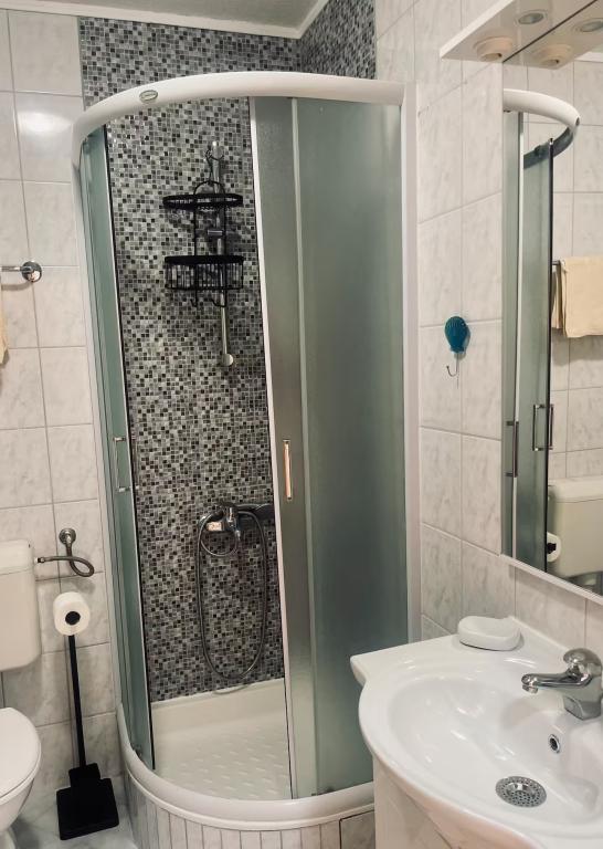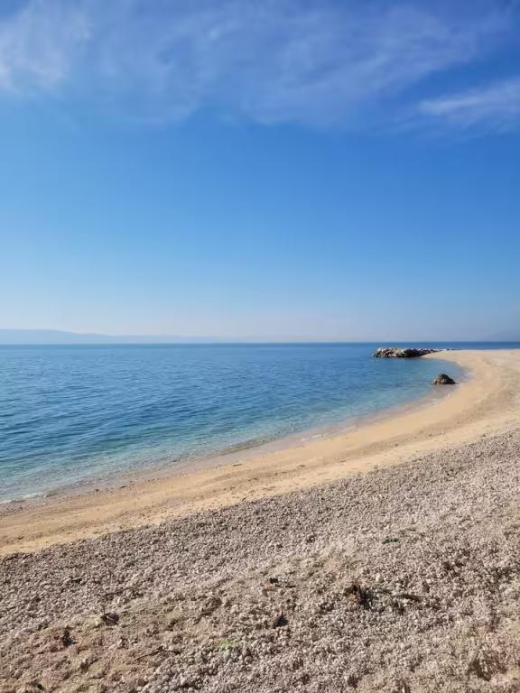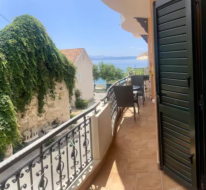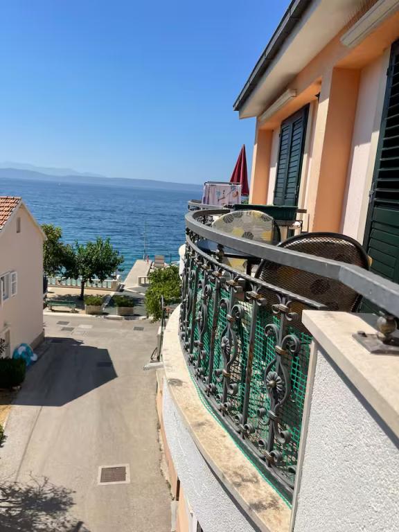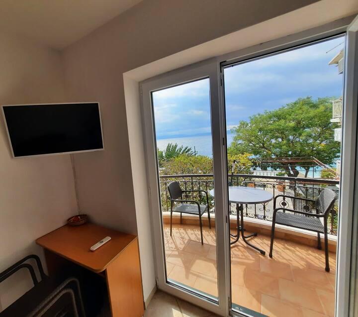 Beautiful apartment with a spacious balcony and a beautiful sea view, just a few steps from the beach. Lovely owner. We recommend