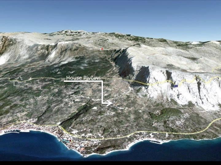 The house is located on the slopes of the mountain Biokovo/1762 m/, in the Nature Park, where there is also a beautiful SKY WALK with many marked hiking and biking trails. Surrounded by gardens, olive trees, a pine forest and the morning awakening of the "orchestra" of birds in a rural part of the village, ideal for a quiet family vacation, suitable for people with allergies or respiratory problems. Podgora will welcome you with its 4 km long beautiful white pebble beaches. The distance from the sea, the beach and the center is 3.6 km, with all necessary facilities: shops, market with local products, fresh fish, fruits and vegetables. Restaurants, bars, pastry shops, water sports, taxi, bus, day trips with a local guide to get to know the heritage, etc. There are very few neighbors and they are very quiet and discreet. The host lives in another location but is available by phone.