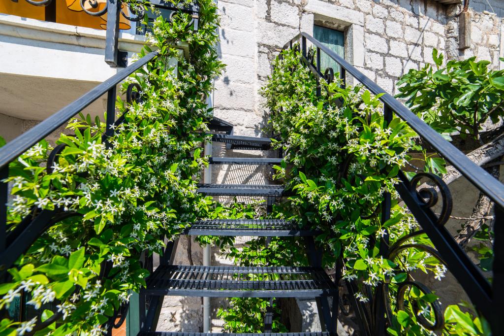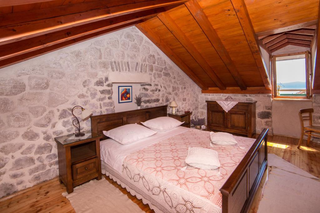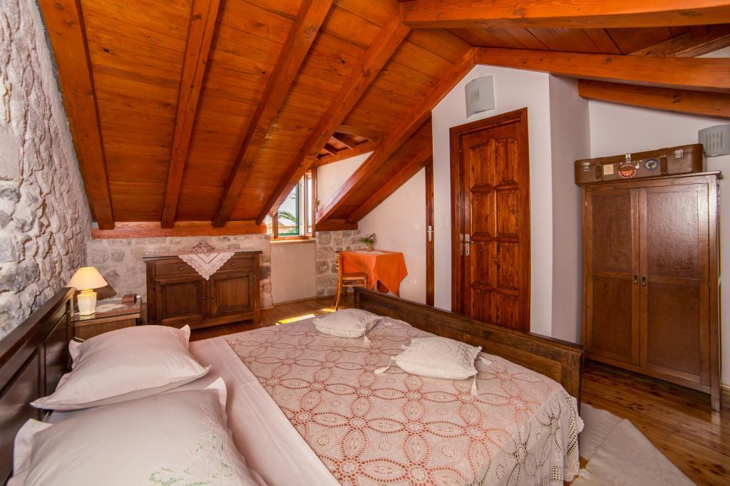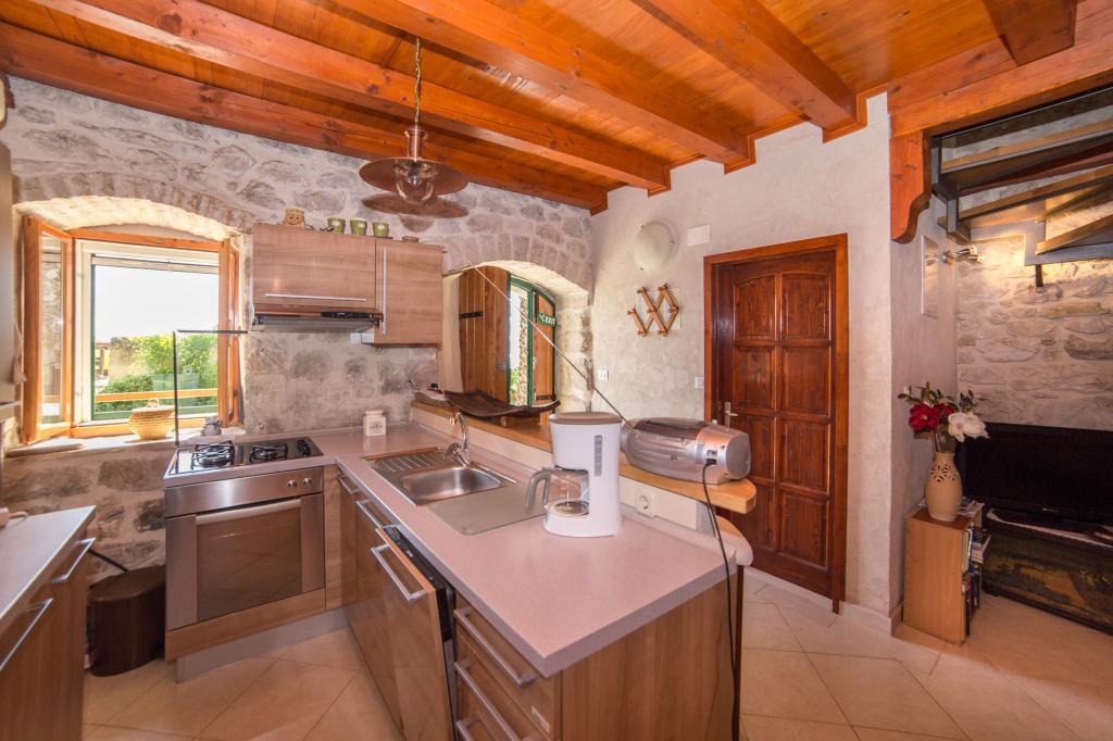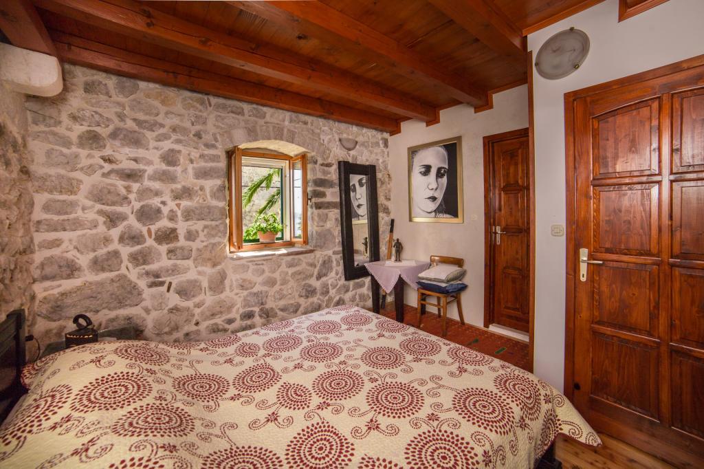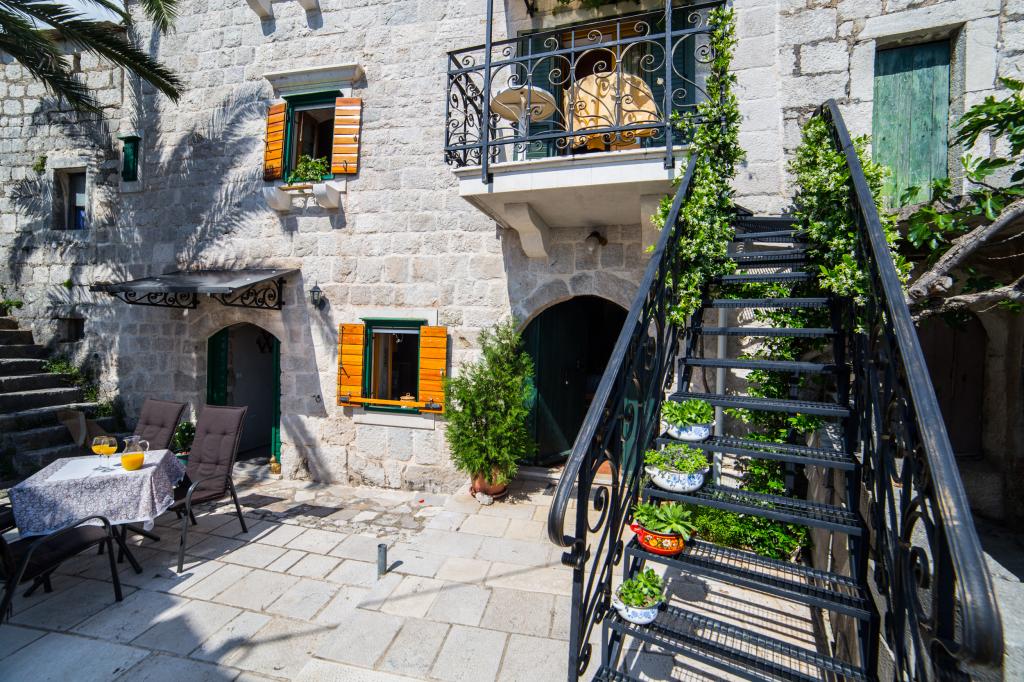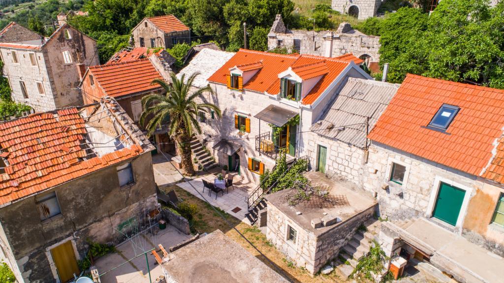 An old stone house completely renovated in traditional Dalmatian style, to meet all your vacation needs, and it will surely touch your heart and soul. Built in 1706 , and then during Napoleon's/invasion/occupation, 1806. set on fire, and finally, in 2006-2010 restored by the owner with care and love, stone by stone. The house has its own story, and the host will tell it to you during the hospitality/with a welcome drink. Two bedrooms are spacious 25m2, with stone walls, high-quality wooden furniture, with two bathrooms, equipped kitchen with living room and toilet. In front of the house is a yard and a terrace with a barbecue and deckchairs for resting. Satellite TV. Internet, air conditioning, dishwasher, washing machine, microwave oven, library with books (50). Let our house be your home, enjoy it and keep it as your own. It has a beautiful view of the sea and the islands of Hvar, Brač, Korčula and the Pelješac peninsula, as well as divine sunrises and sunsets.