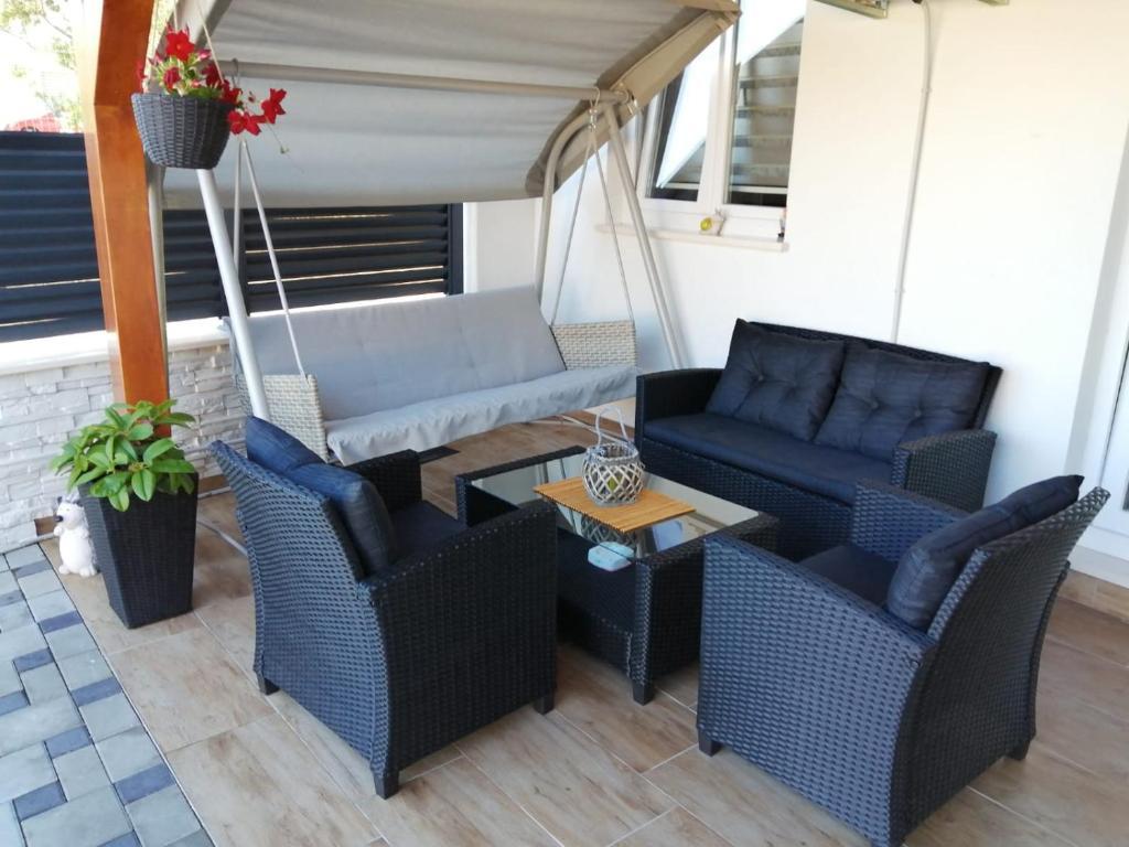 Apartment KARLA is located in Strožanec-Podstrana, approximately 8 km from Split. Our house is located in a quiet neighborhood, only 800 m from the sandy beach. Along the beach you will find numerous restaurants, bars, pizzerias and cafes offering typical Dalmatian food and drinks at affordable prices. The apartment has been recently renovated and has air conditioning, TV, free Wi-Fi and a secured parking space. The kitchen and bathroom are equipped with all the necessary amenities (dishes, refrigerator, dishwasher, towels, toilet paper, washing machine...). There is also a barbecue in the garden at your disposal, and you can enjoy your morning coffee on the beautiful terrace surrounded by flowers. We are a kind and hospitable family who wants to provide you with a peaceful and pleasant vacation in our beautiful apartment. We look forward to meeting new people, and if you have any questions, we are here to help you. :)