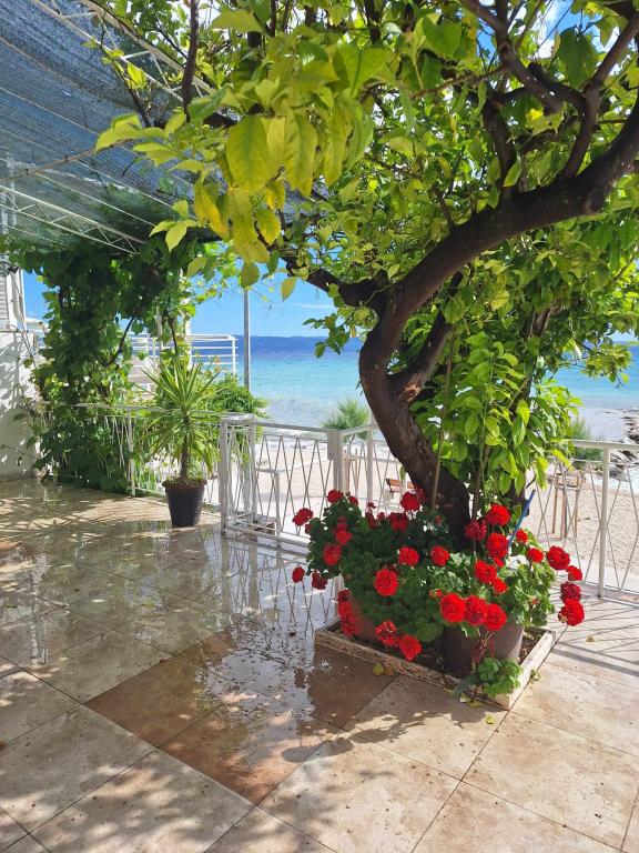 The cozy and spacious house is located on the beach itself, 10 m from the sea. Guests have deckchairs at their disposal. Ideal position for families with children. Parking provided.