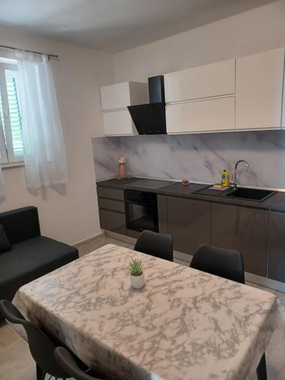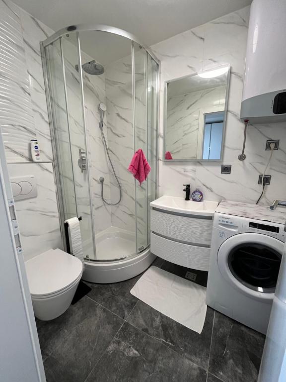 The apartment is beautiful. Free sunbeds are available to guests. Kudos to the owners Anto and Irena, who are so kind and communicative. They delighted us. The sea is just a few steps from the apartment. A supermarket is located a few minutes' walk from the apartment. Our stay was perfect and we will definitely come back again.