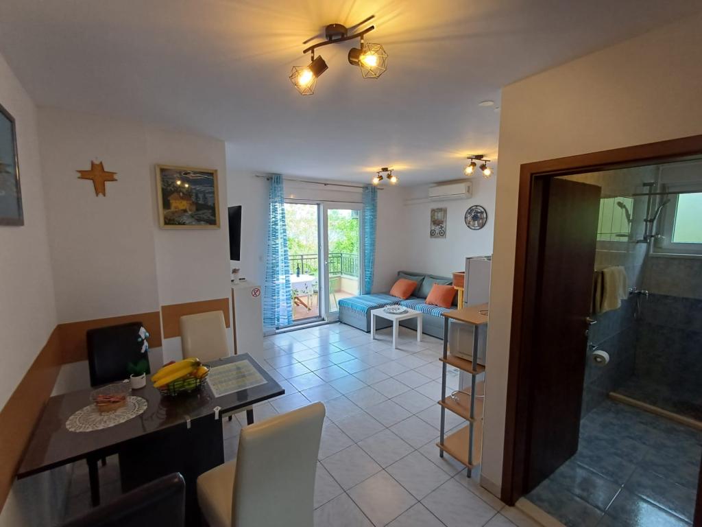 The apartment is very nicely decorated, impeccably neat and clean. The color tones are beautifully harmonized so that the stay here very pleasant. Land is also very beautiful. Green lawn with a lot of various flowers, cacti, olive trees, fig ... The house is located next to the sea with a view to the south so we have all day to enjoy the sun and the view of the sea and the beach. The hosts are very nice and warm in communication, always willing to help if you need them. Otherwise we tend to change places every year, but this is our first time that we wanted to holiday again in this apartment. Hosts wish all the luck in their future work. We recommend to everyone.
