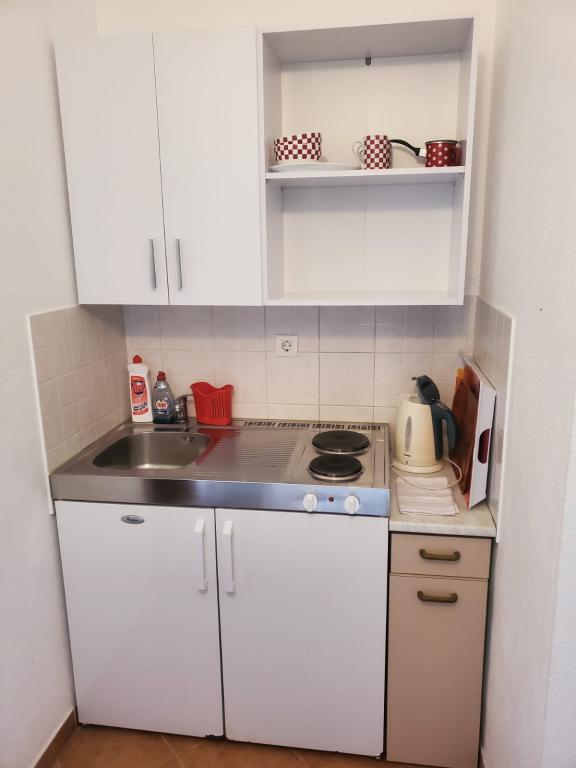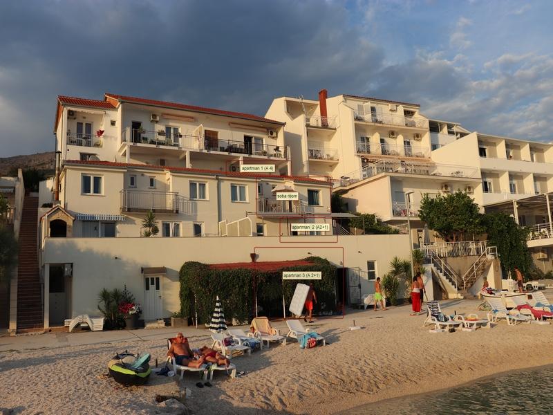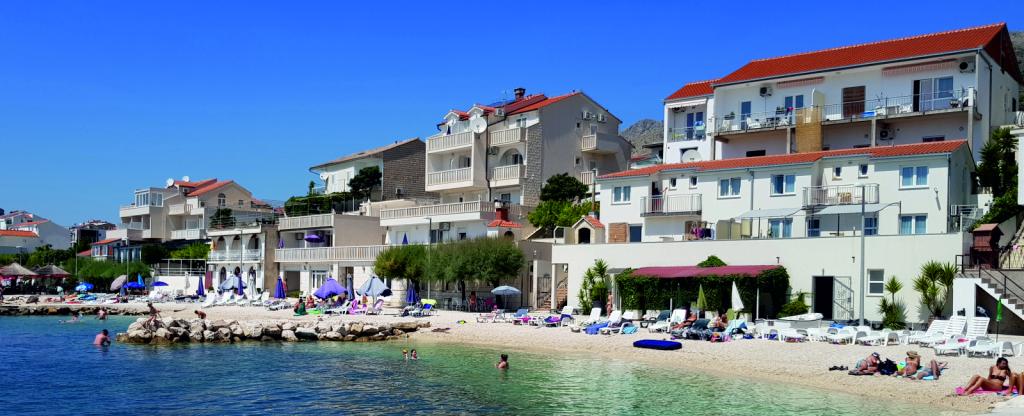 Fully equipped apartments in Podstrana, located first row to the sea. The apartments are located 50m away from shops and restaurants. Secured place on the beach with sunbeds and umbrellas included in the price.
