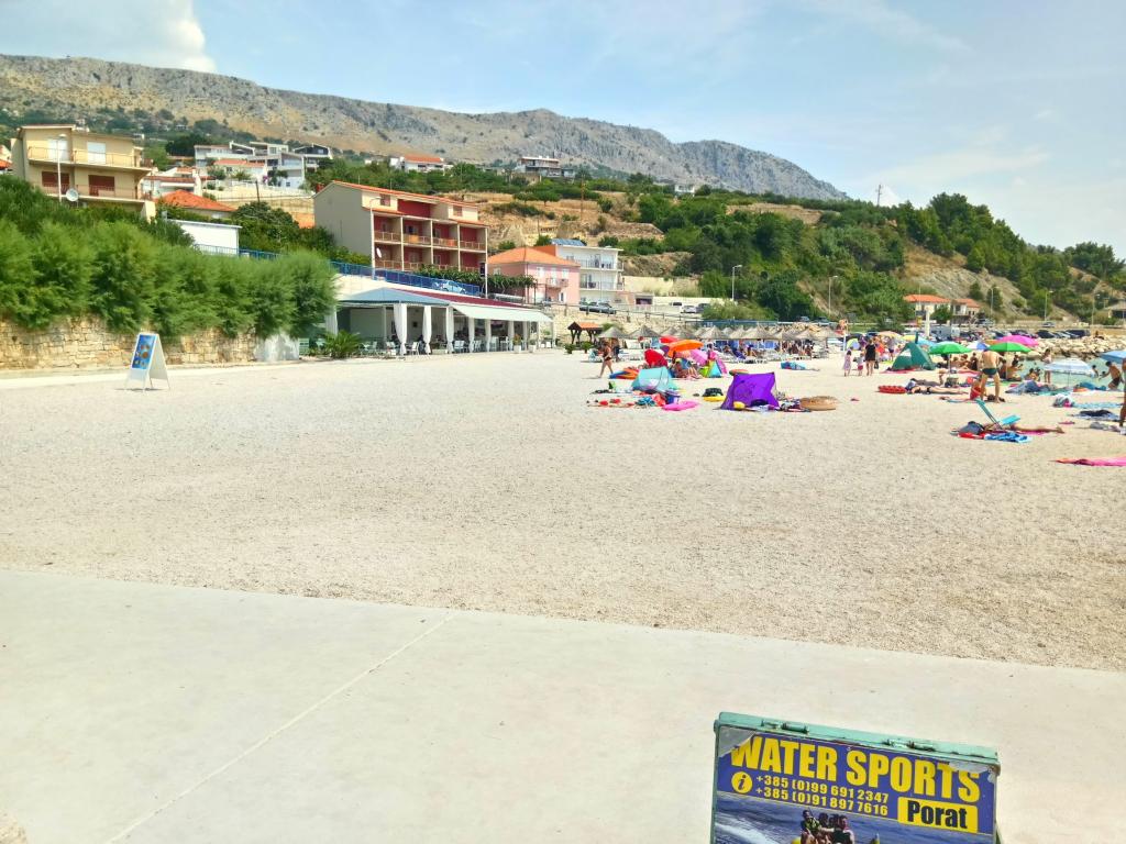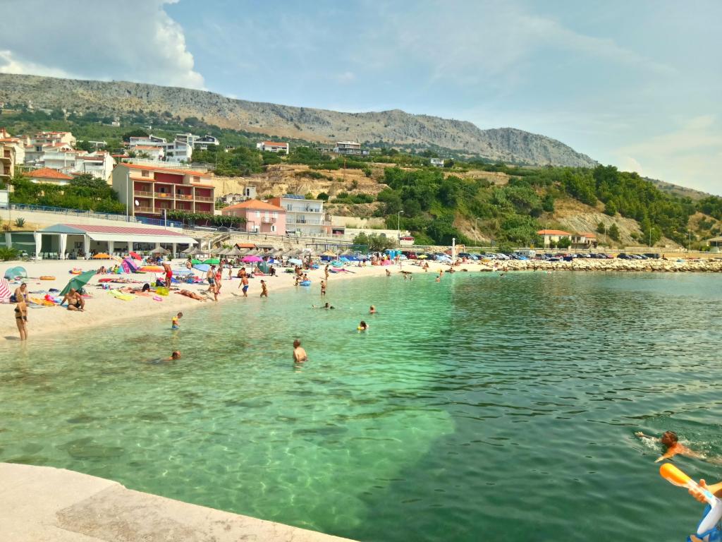The house is situated in a quiet part of Podstrana. Distance from the beach is 50 m. On the beach there are two coffee bars and fast food. Near the house there is a restaurant, pharmacy, supermarket and bakery. The house has a large parking lot and garden. We have a small and a large barbecue. The house is suitable for holidays of large families with many children.