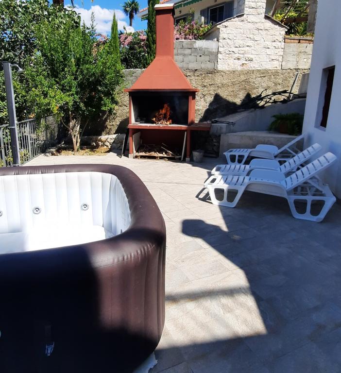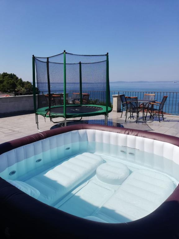 We just returned from Podstrana. We stayed in apartment 8+2. It's an apartment neat, clean, beautiful, super equipped. 3 rooms, each with a bathroom, a large kitchen equipped with everything you need. A large terrace with a barbecue and a jacuzzi, which the children especially enjoyed. The beach is literally a few steps away. The owner, Ivana, is very nice and helpful for whatever you need, as is her brother Mario. Finally, I leave the adorable little Ivona, daughter of the owner Ivana, who is a beautiful girl, our children adored her and she certainly brightened up their summer vacation.