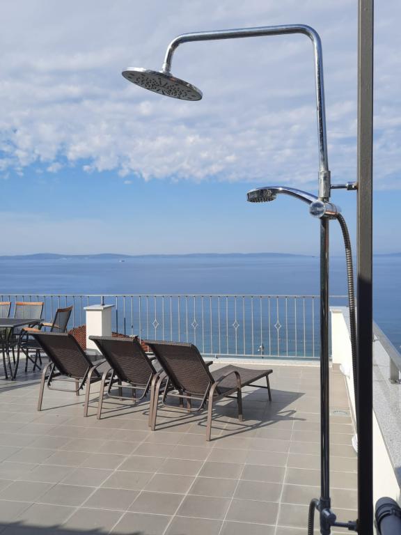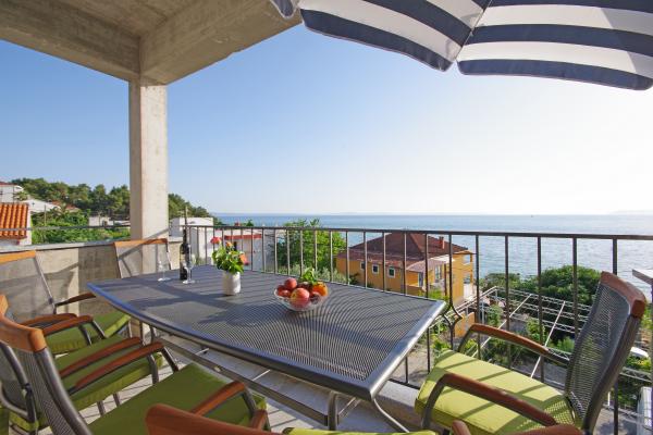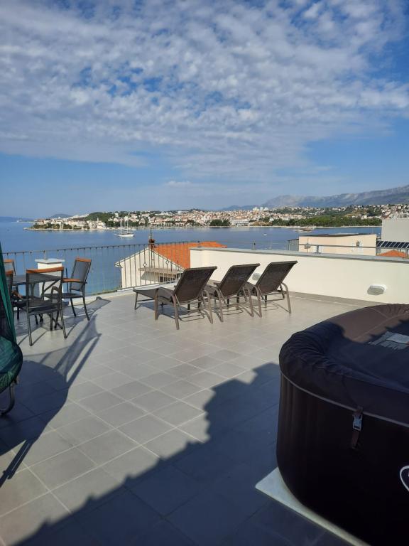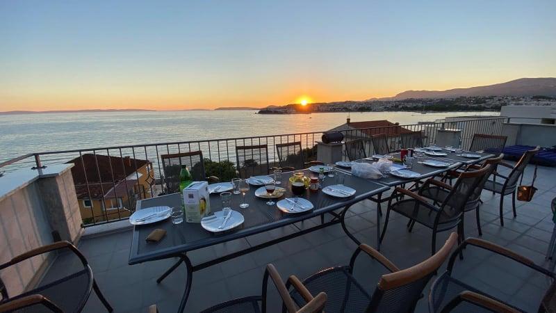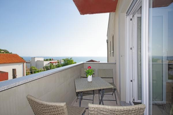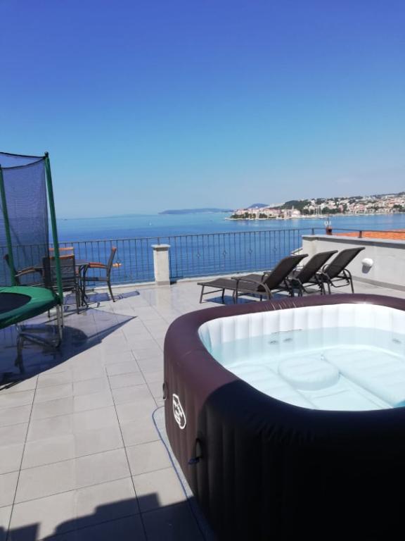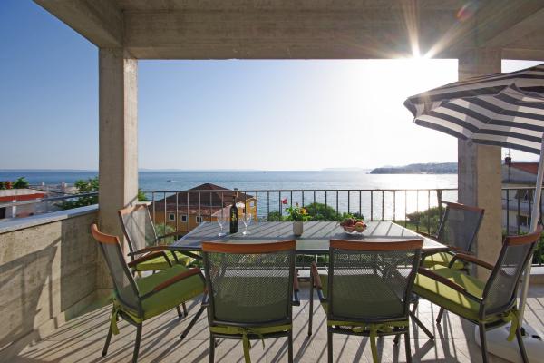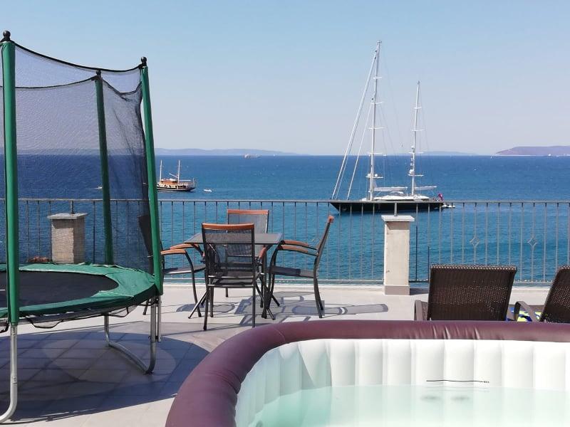 Luxurious large clean apartment with a beautiful view of the sea. The apartment is fully equipped. There is air conditioning in every room. It has two terraces. One is internal and the other is external. Each apartment has a grill and Jacuzzi, outdoor shower, sunbeds. All apartments have a sea view. The roof terrace has the most beautiful view. The beach is close to 2 min. by foot. There are several restaurants nearby on the beach. In the immediate vicinity there are groceries, a pharmacy, a bakery... The hosts Ivan and Mário are kind, caring and very hospitable. They can withstand even the blue ones from the sky. We are still in touch. We have been here 5 times. We were here for the first time in 2018 and we are happy to come back. We feel at home here