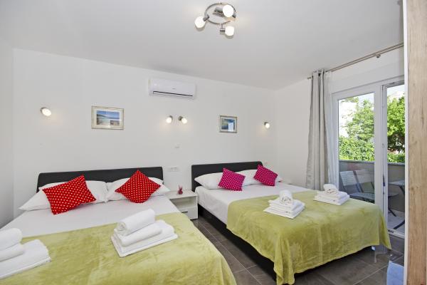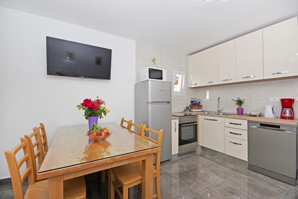 Wonderful clean accommodation with a great hostess. The hostess is very helpful, and although she communicates in Croatian, she always tries to explain everything clearly. Accommodation beautiful, looks better than in the photos. We had an apartment 7 + 2, each room had its own bathroom. equipment with shower. On the terrace grill, trampoline and swings for children. Luxury accommodation, to which we will certainly return. A short walk from the sea ...