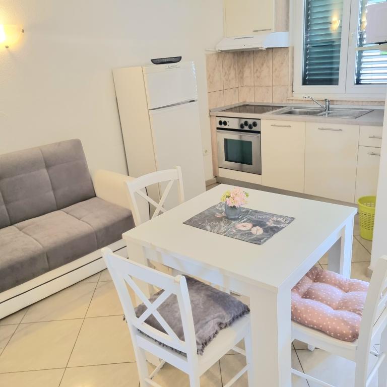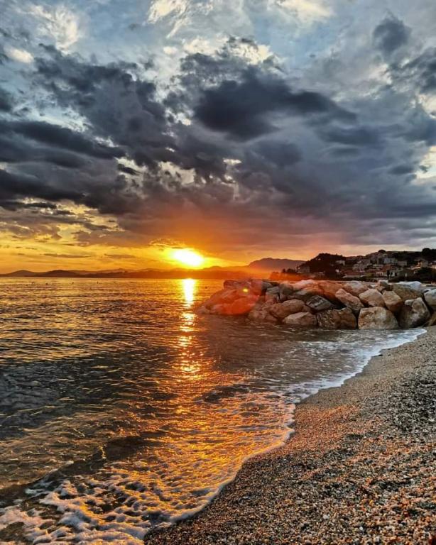 I visit here every year beautifully, warm, very friendly hosts. Location great, quiet, peaceful, romantic, beach a few steps with free sun beds, clean sea, warm. Near the charming Split, with many attractions, Omis, Makarska. I recommend both for those seeking peace people and families with children, safe backyard with a place to barbecue and the host always used the help, even fish from Split will take a hostess will treat a magnificent wine, nutcracker 100 m from the apartment market, bus aytobusowy, it is so charming place, with every year I go back with pleasure, it feels like home