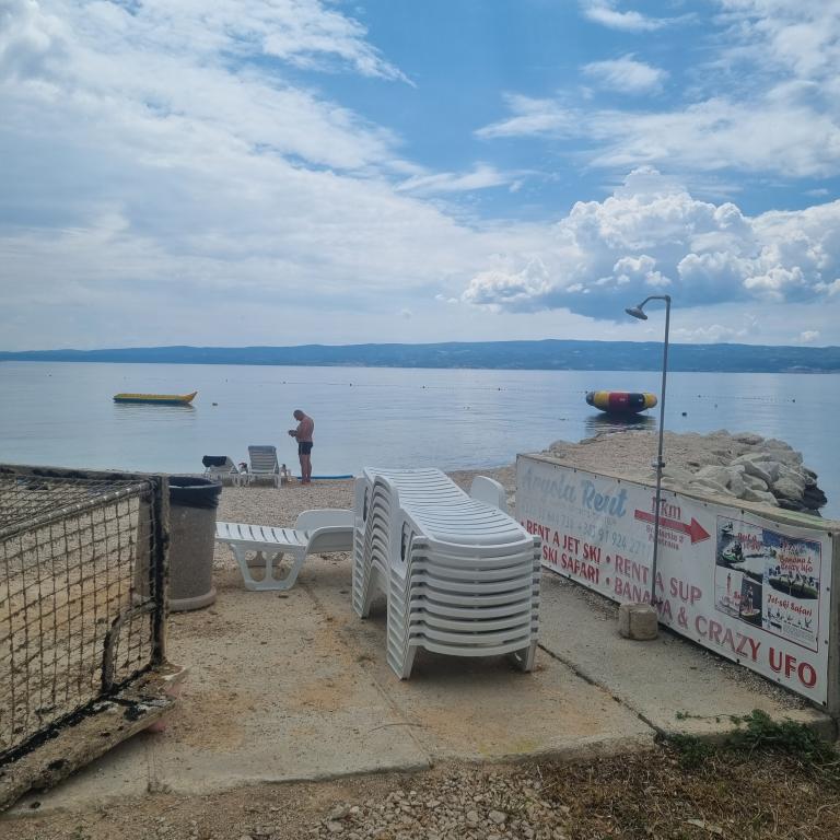 For four years I go to the apartment SARA. I've got everything you need for a good rest. Warm, clean sea with the quiet beach with free sun loungers just a few steps from the house. The beach cafe with beer and coffee. Within 100m market with good supply and the bus stop where you can catch buses to Split, 8 km away. City charming, full of sights, attractions for everyone. Friendly hosts, offering advice in any situation. Rooms with a great view of the sea and garden. I recommend to all, nice place with a great atmosphere.